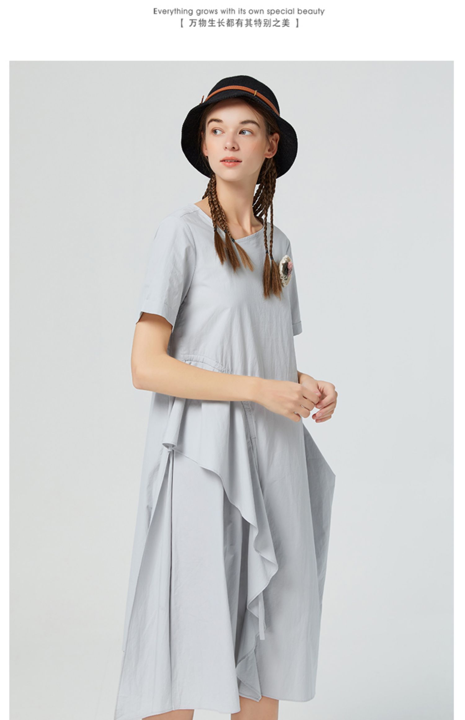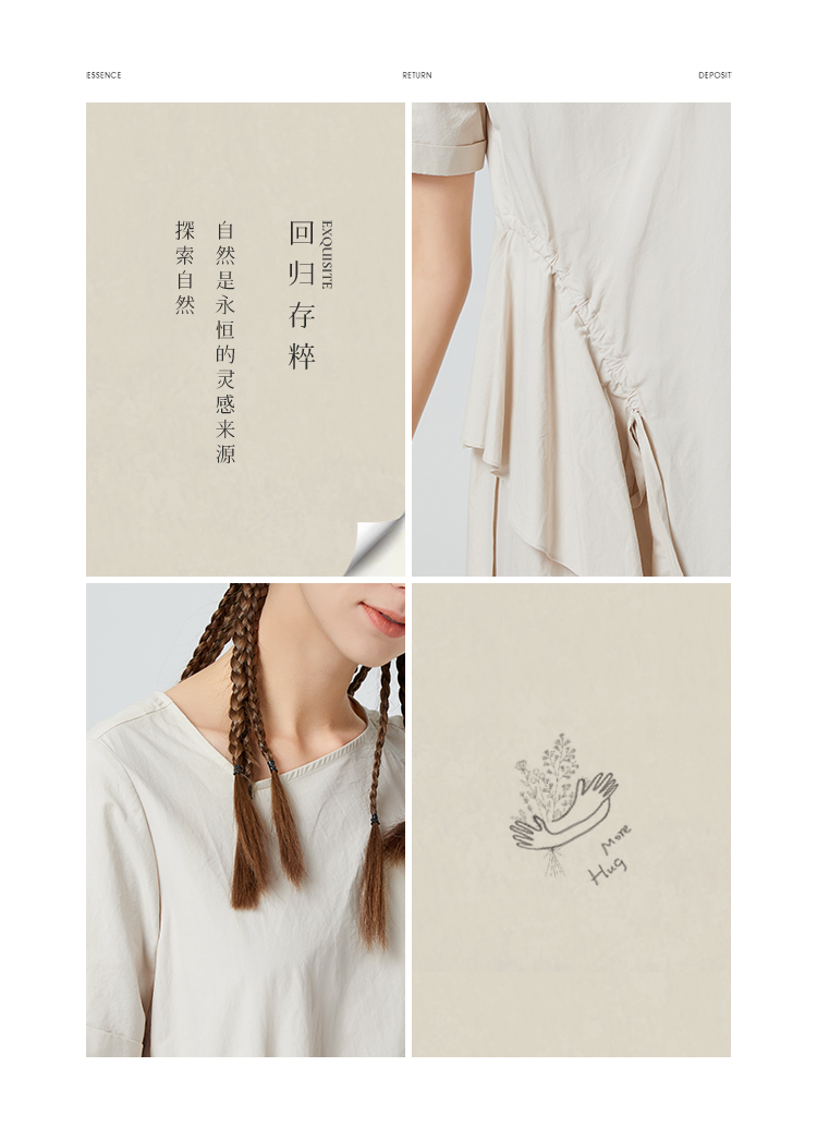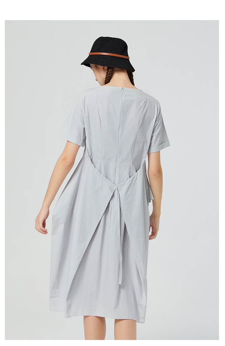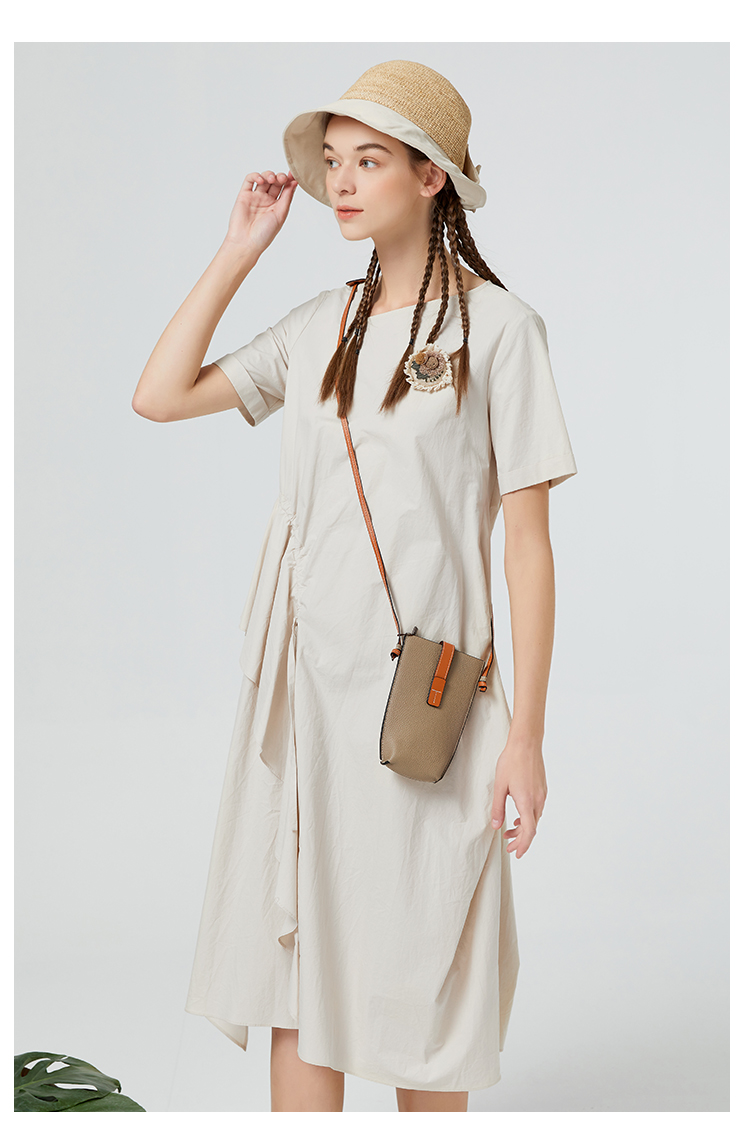 Famecoco范可儿纯棉不对称连衣裙女夏荷叶边长裙气质超仙F223FA006