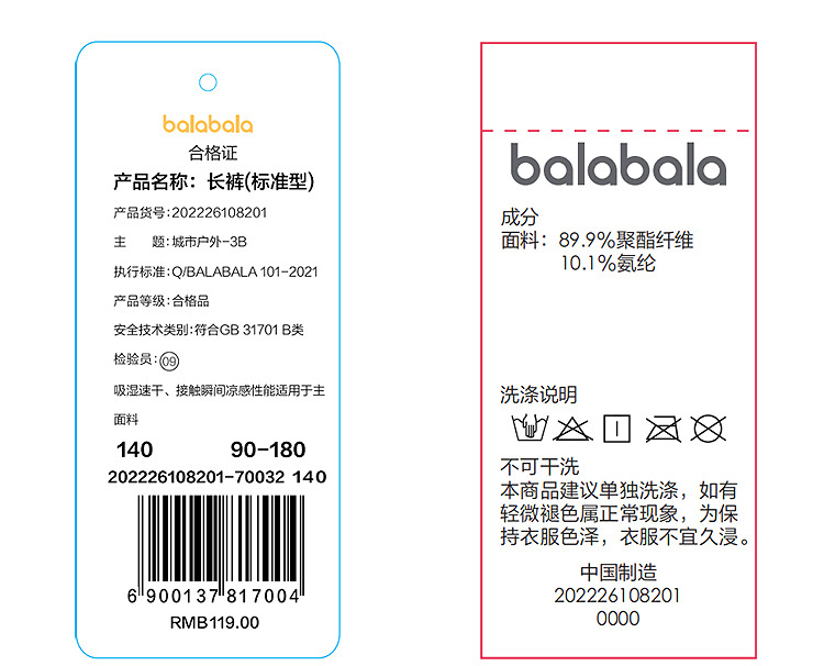 【商场同款】巴拉巴拉男童女童休闲裤儿童裤子2026夏薄款长裤速干