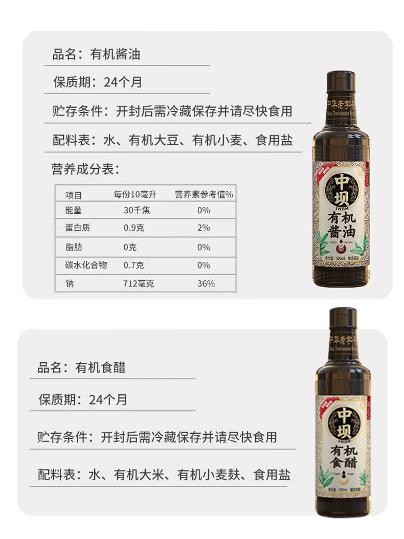 【有机酱油/醋】❤️0添加(0添加防腐剂、着色剂、味精、0酵母提取物、0糖、0增味剂)配料简单(水、黄豆、小麦、食用盐、口蘑)纯手工酿造,【15项农残0检出】《 中国非遗传承产品》百年老字号 O添加