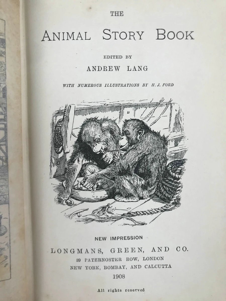 1908年 安德鲁·朗格《动物故事集》 60余幅插图 漆布精装32开