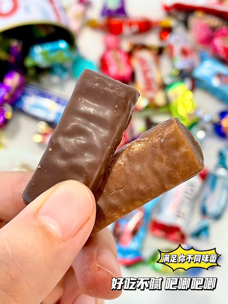 不一样的巧克力🍫 巧克力外皮+夹心,内外不统一的口感 在嘴巴里不断碰撞,要多好吃有多好吃~ 外皮巧克力吃起来完全不腻,脆脆的 和夹心的口感融合得恰到好处😍 提升幸福感的糖果😋 无敌好吃🥳
