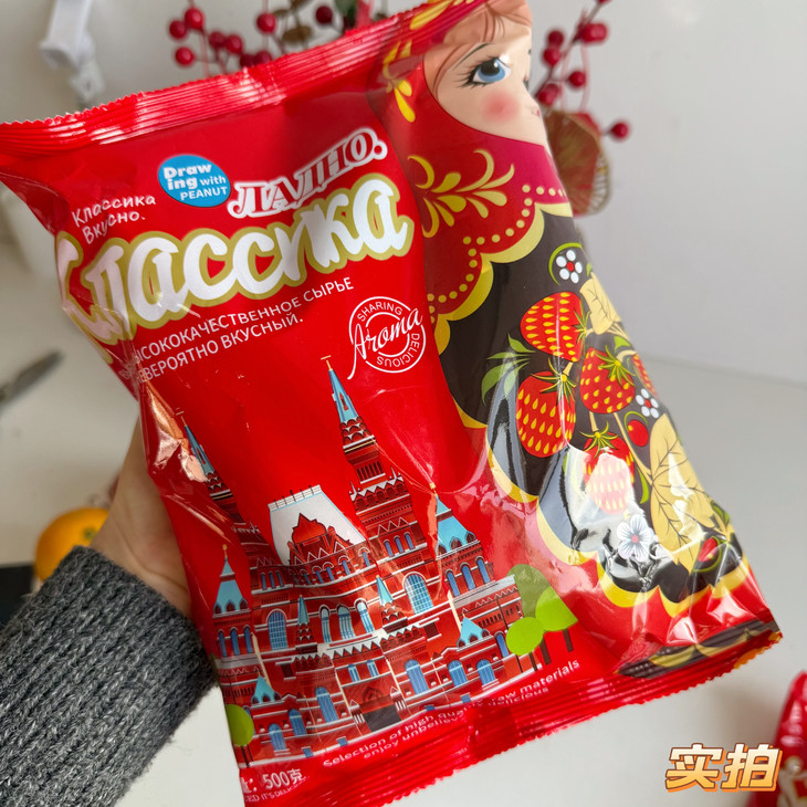 俄罗斯风味袋装糖果 这个看名字就知道它的作用是干什么的🤗 不知道节日送什么的先把糖果买上‼️ 女孩子这里没什么比吃“甜食”更开心的事情了🥳