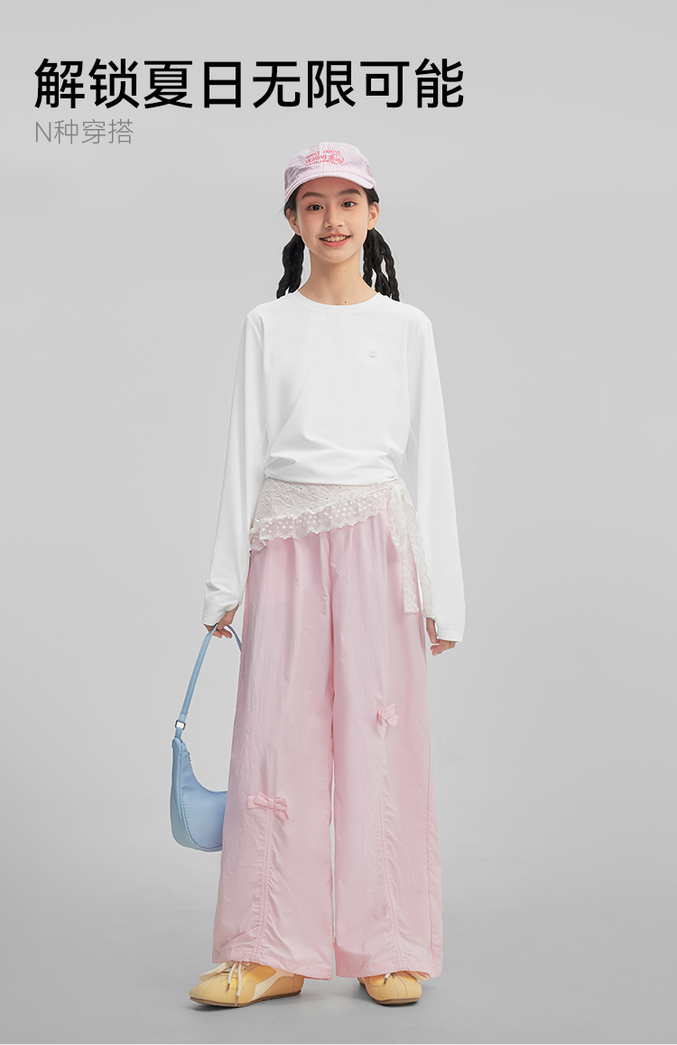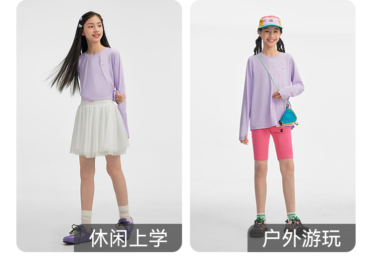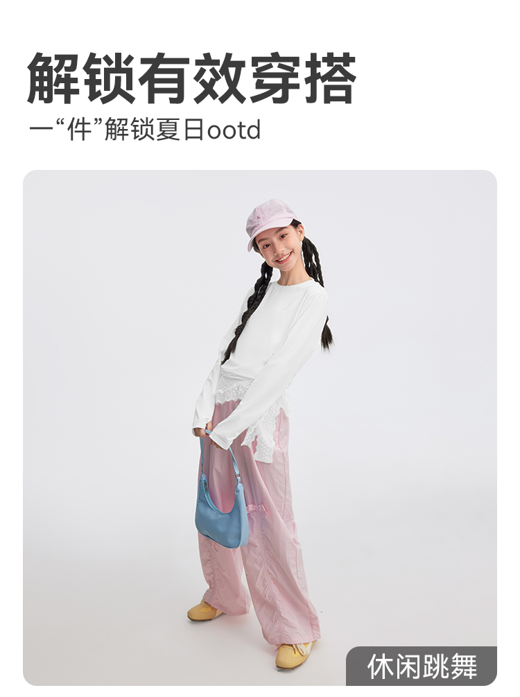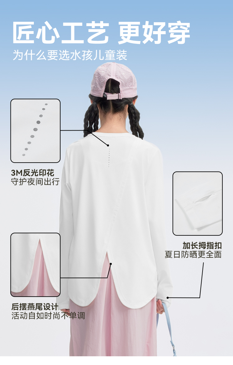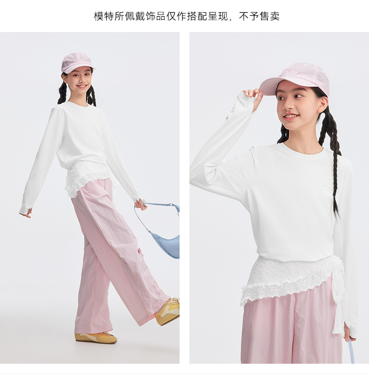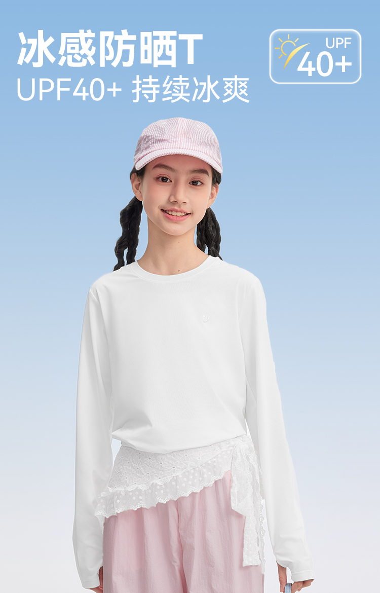 水孩儿童装防晒T恤女童2026春装新品凉感弹力上衣大童长袖圆领衫