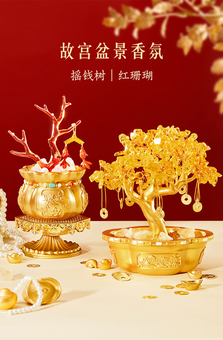【故宫摆件】摇钱树珊瑚盆景香薰摆件文创新年本命年生日礼物