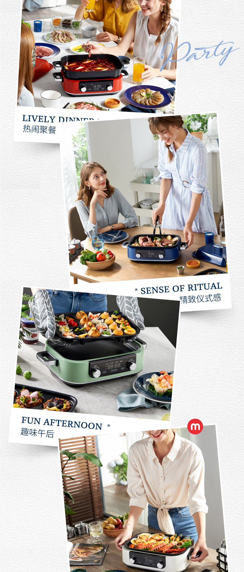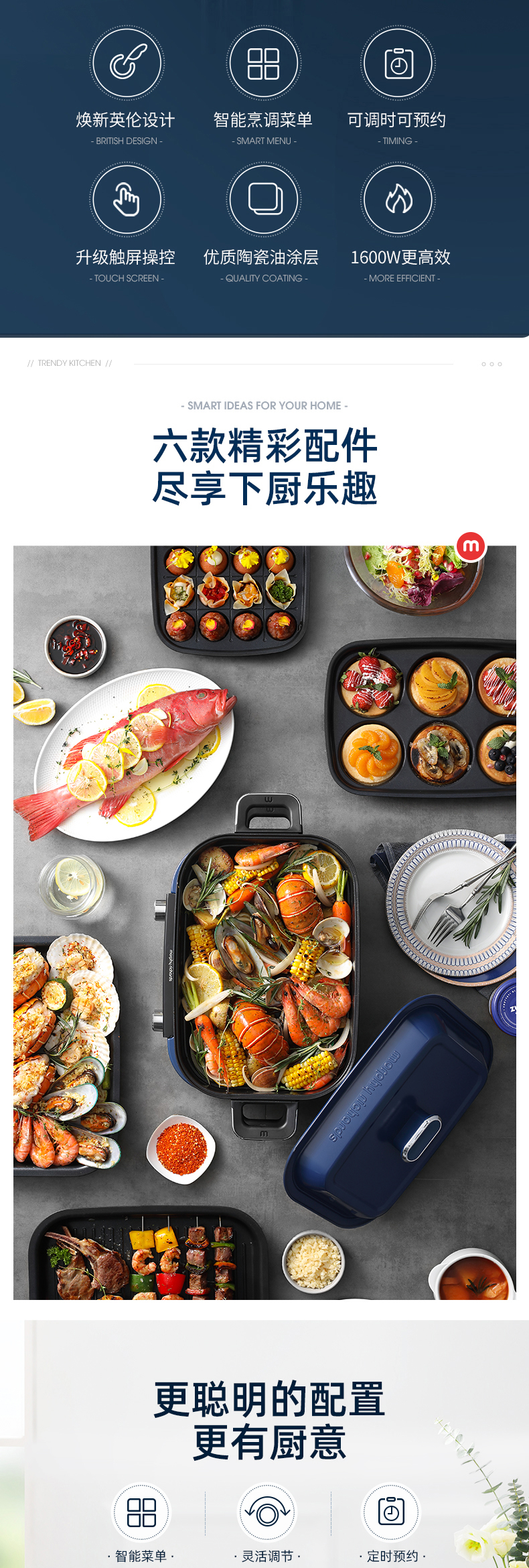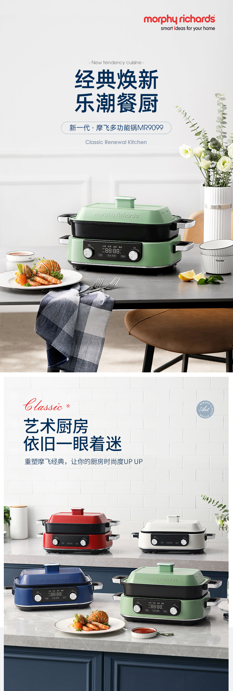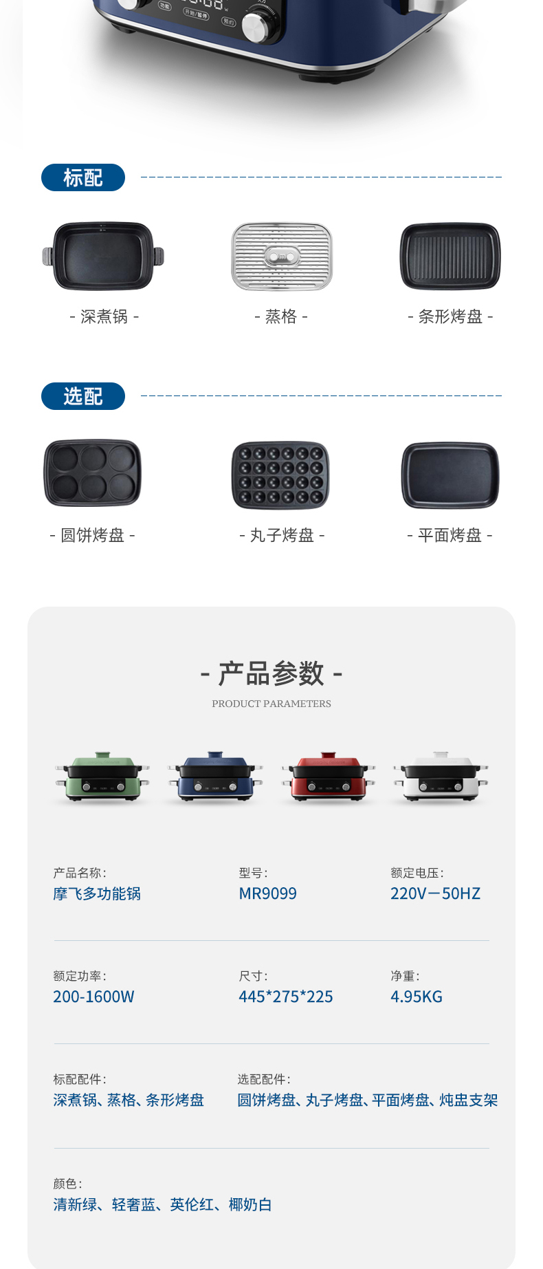 【升级体验 一锅多用】摩飞多功能锅MR9099 可调时可预约 触屏操控 1600w大火力 5L大容量