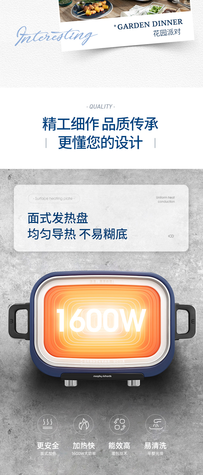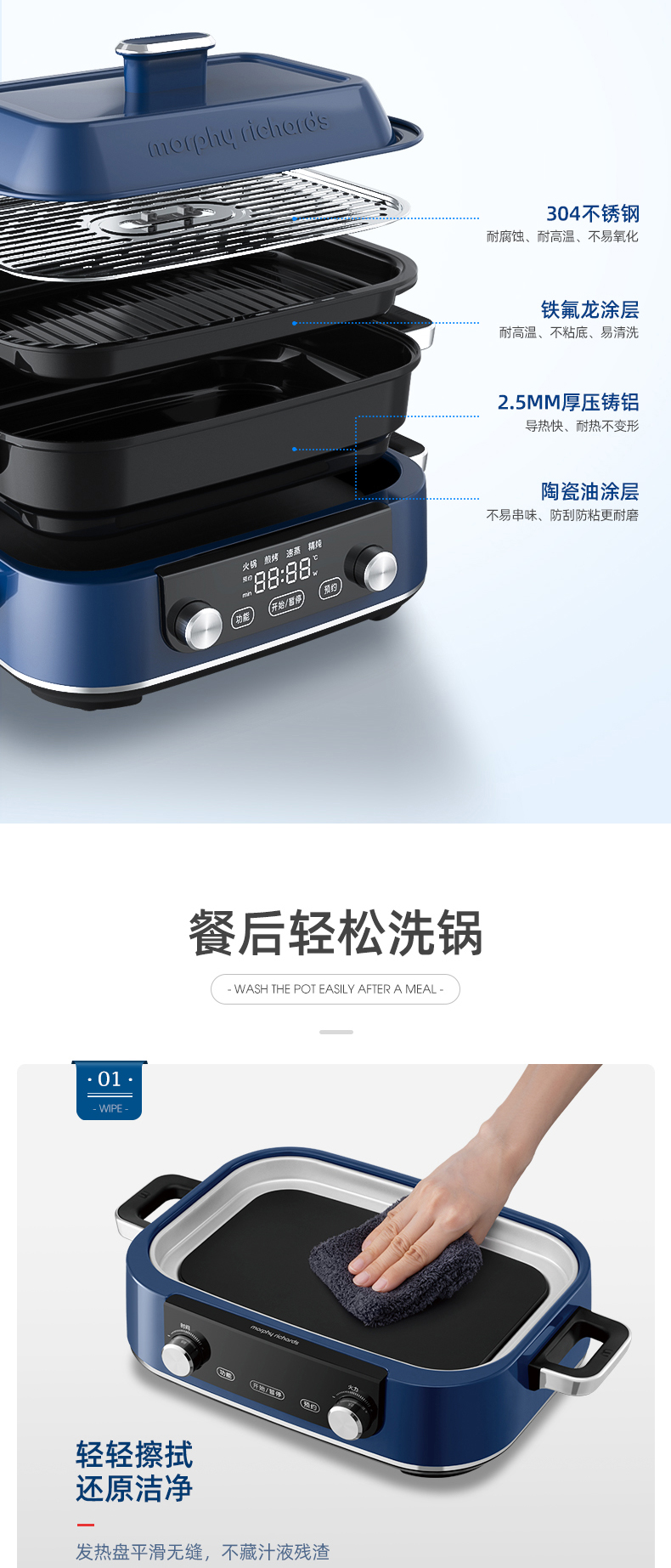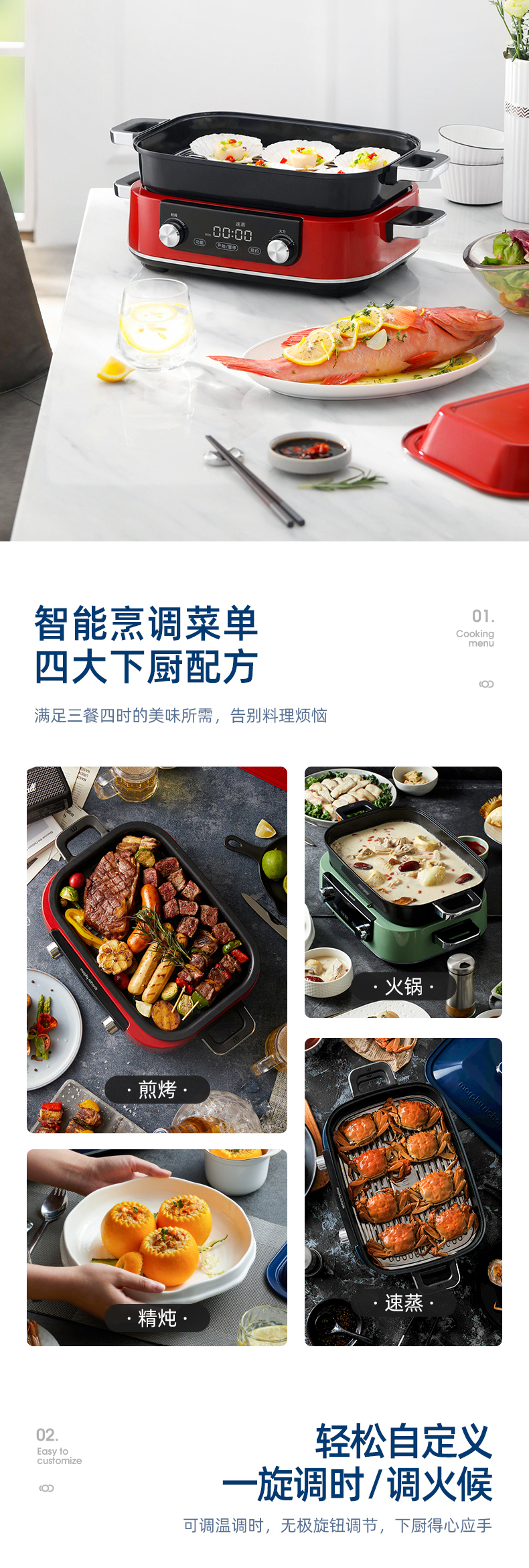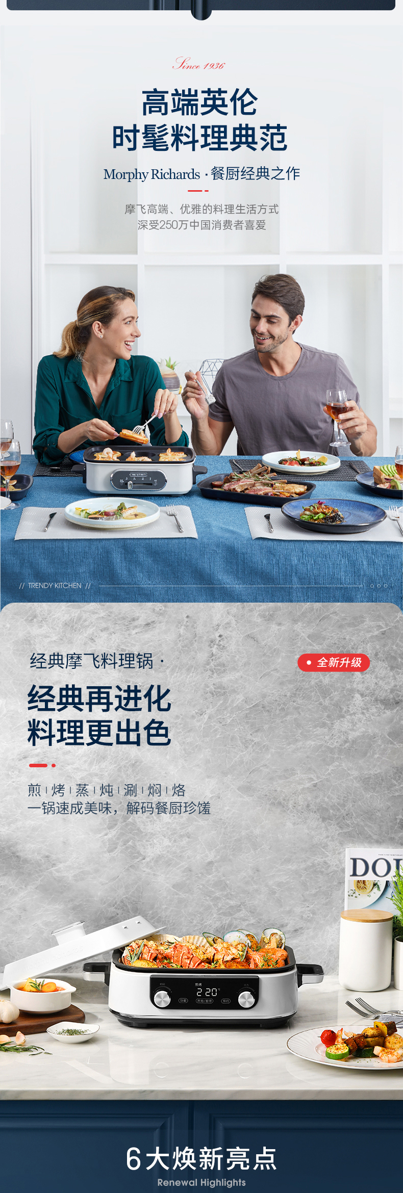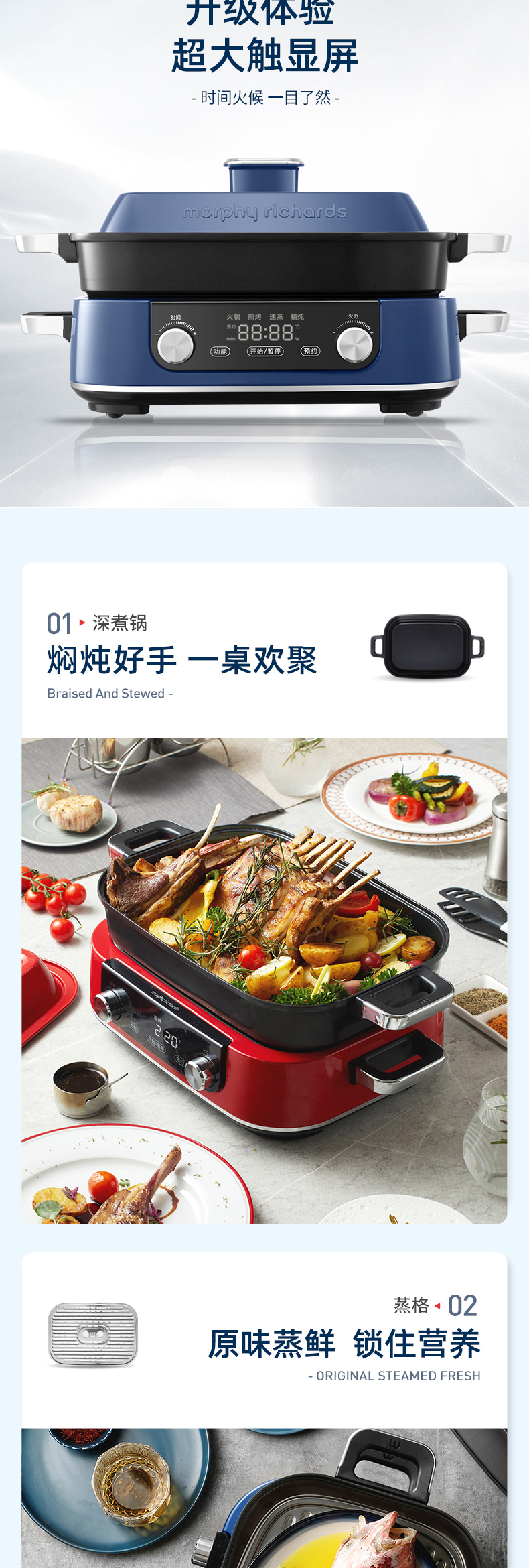 【升级体验 一锅多用】摩飞多功能锅MR9099 可调时可预约 触屏操控 1600w大火力 5L大容量