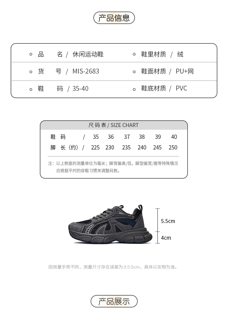 【YW】无忧购加绒老爹鞋女运动休闲百搭厚底拼色跑步鞋MIS-2683-1(截单后3-5天发货)