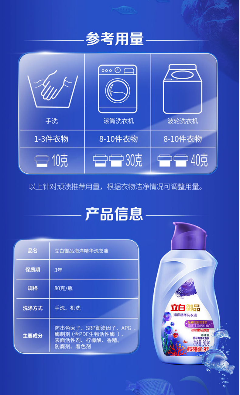立白御品海洋精华洗衣液80克*5瓶 组合 员工福利 家庭清洁