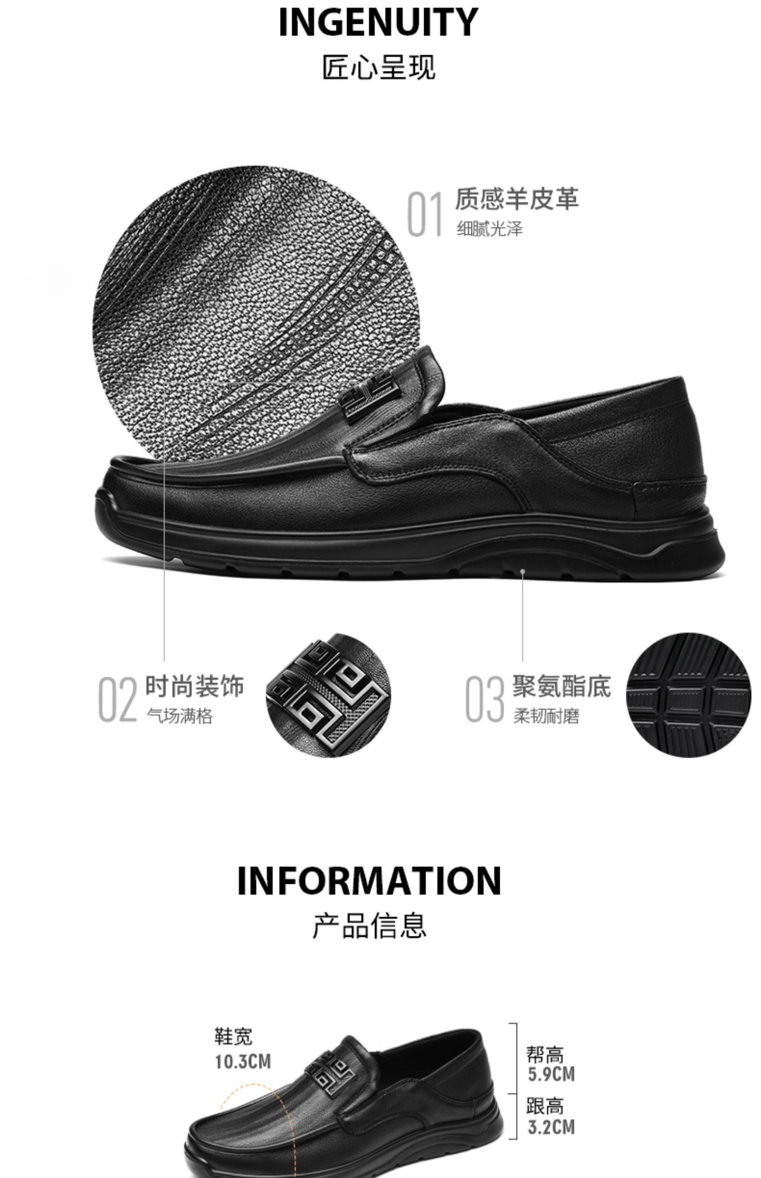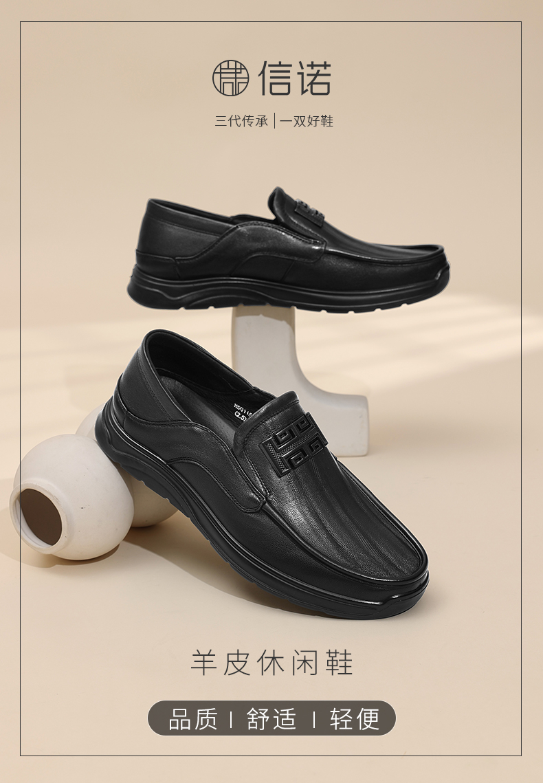 信诺羊皮爸爸鞋舒适软底一脚蹬豆豆鞋休闲单鞋皮鞋男2025新款秋季N5Q115-136