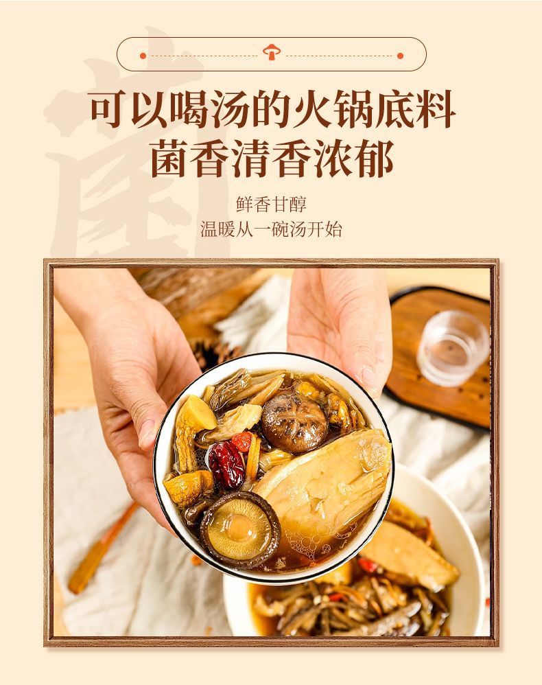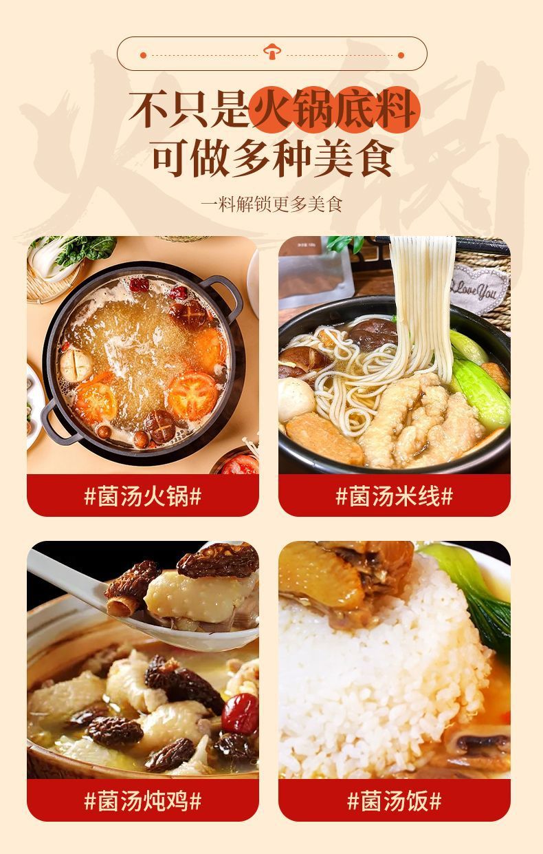 【买5送5❗️能喝汤的菌汤火锅底料】鲜美浓郁,自然鲜香,多种菌菇熬制,美味又营养,全家都爱喝!清汤不辣煲汤料包重庆特产小包装冒菜鸳鸯锅