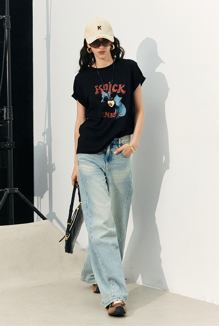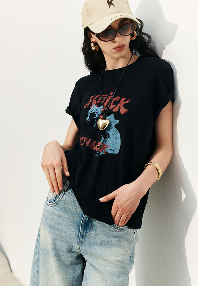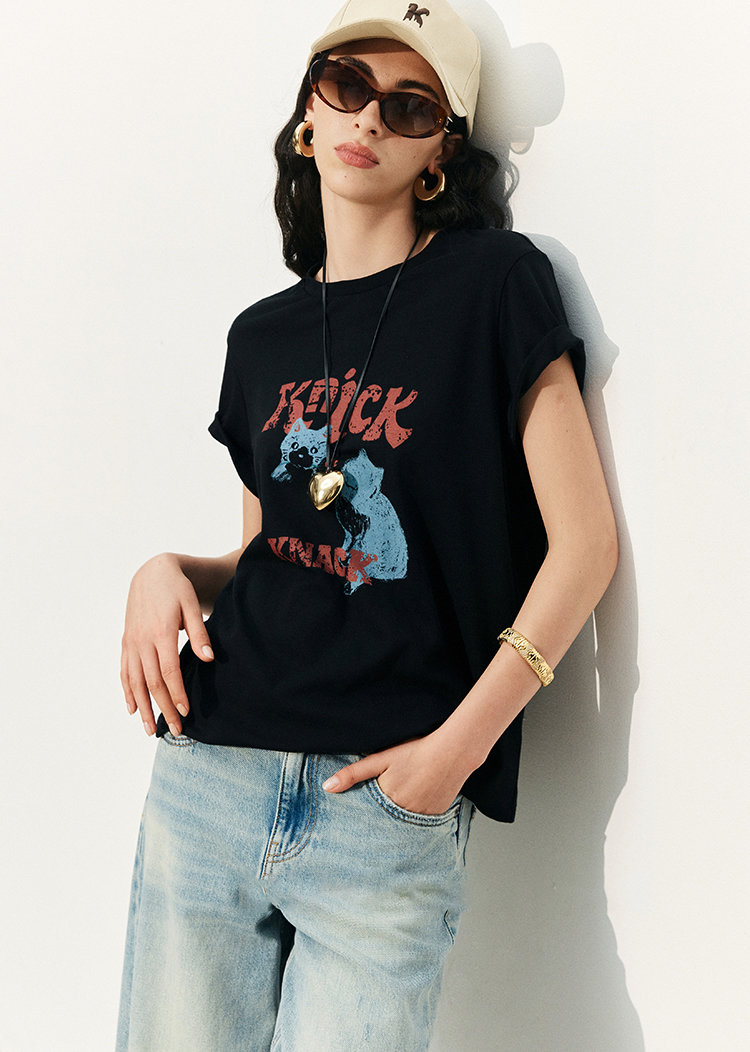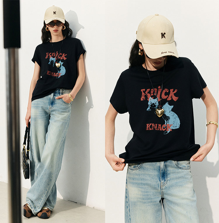 so cute 甜酷「猫咪涂鸦 T」,你爱的夏日薄~