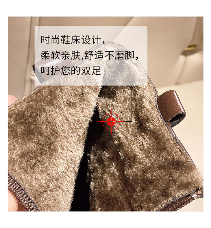 秋冬季新款加绒棕色马丁靴女英伦风圆头保暖短筒后拉链显瘦短靴女