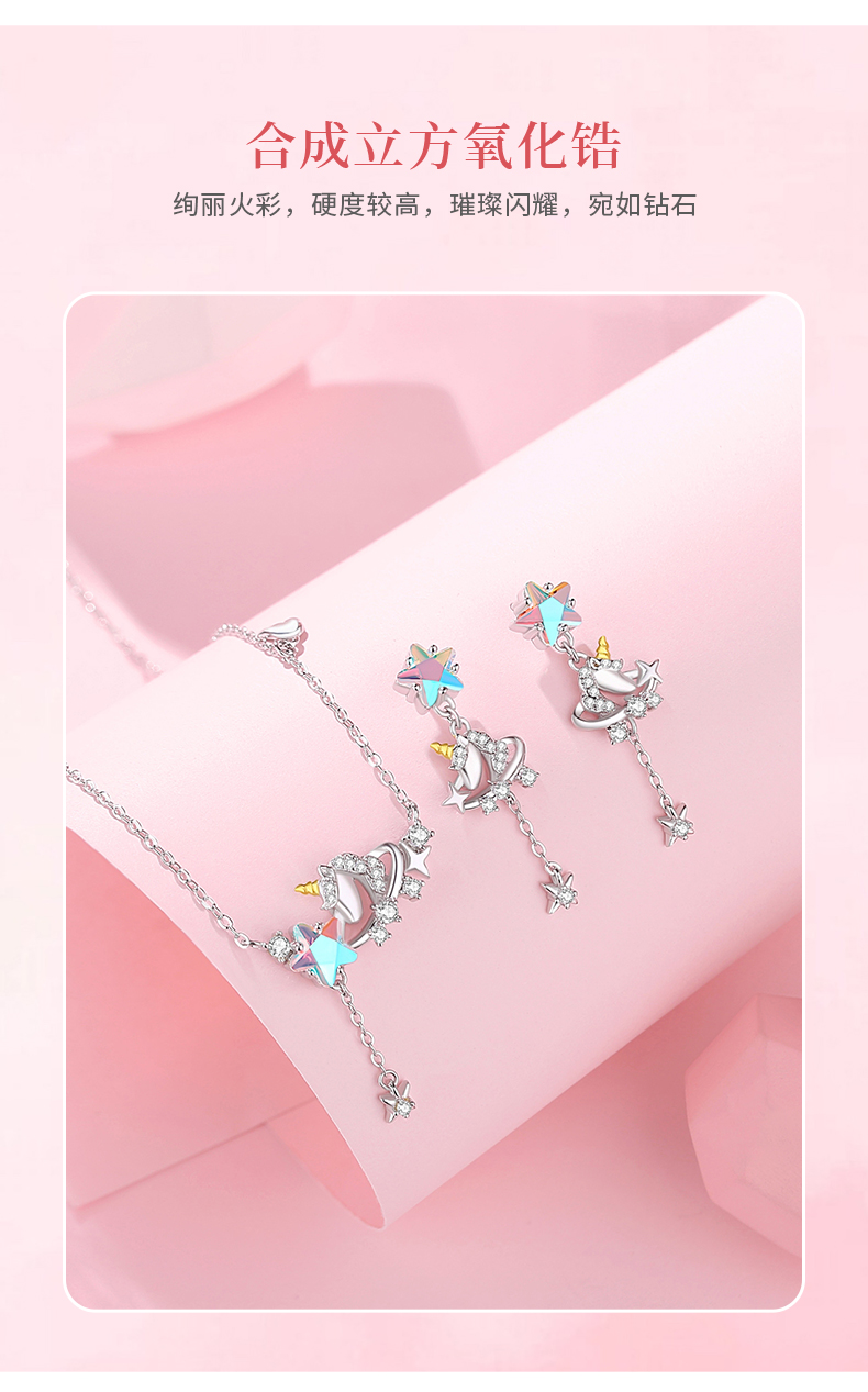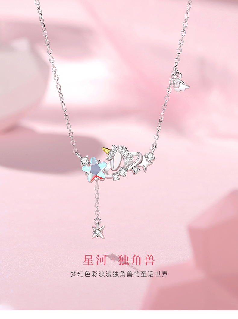 卡蒂罗/KADER 在逃公主系列 星河独角兽项链 925银经典彩锆五角星浪漫仙气设计流苏锁骨链 轻奢小众 闺蜜同款