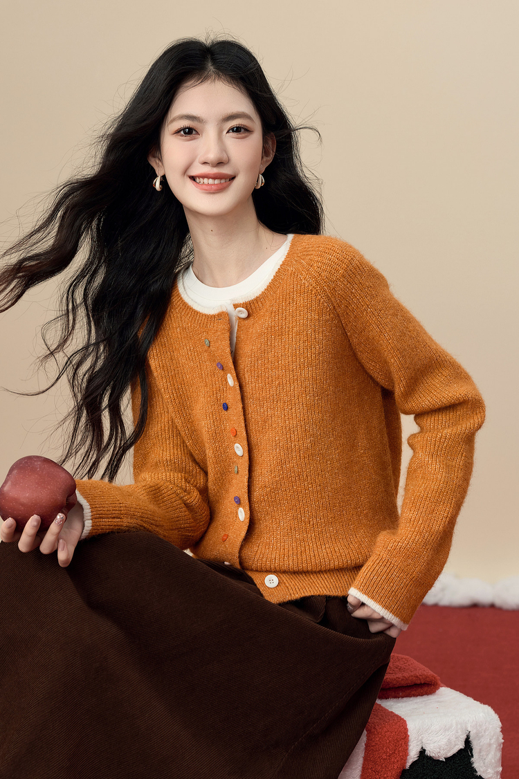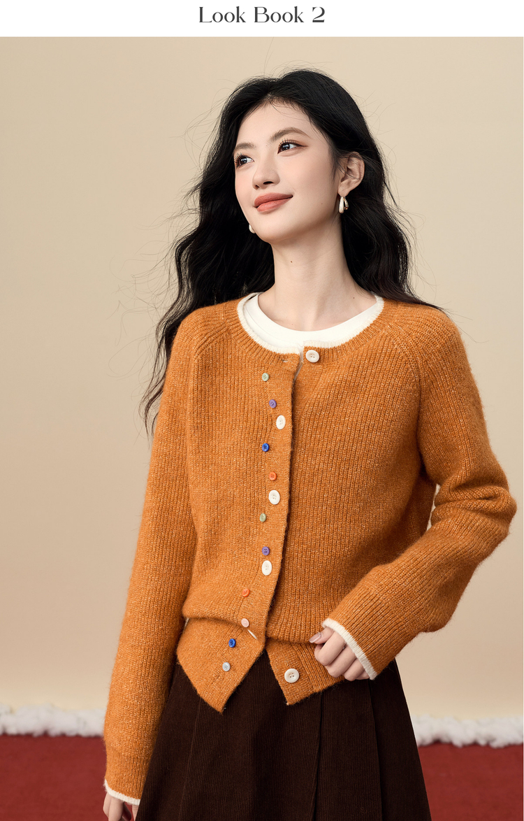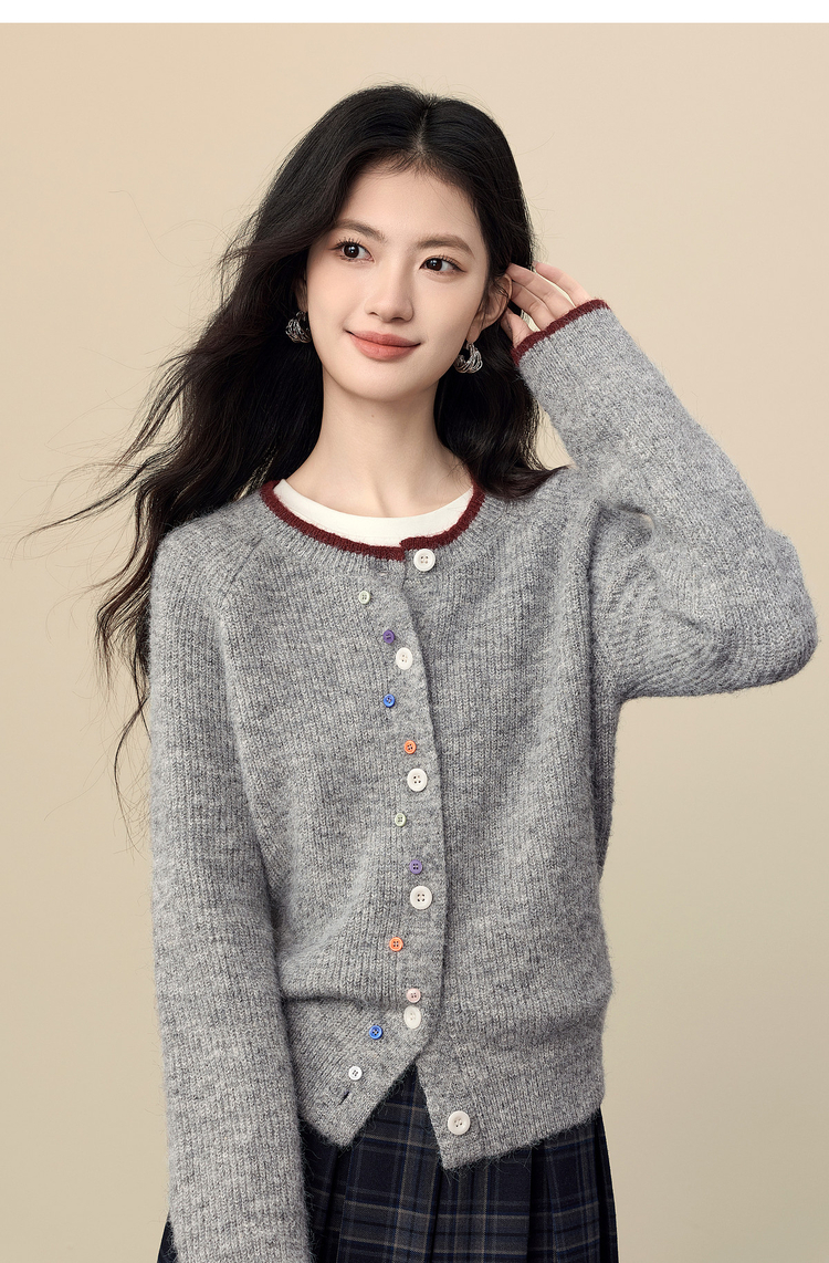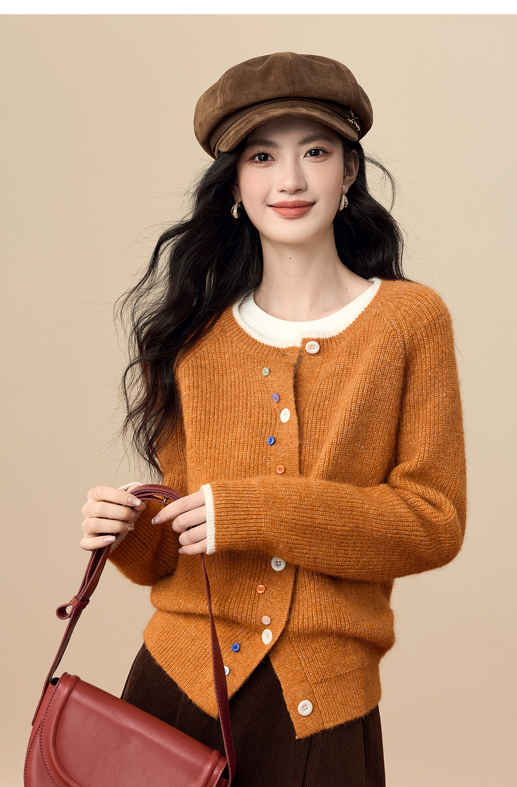 【周四狂欢价】熙世界彩色纽扣厚款毛衣开衫女2025年秋冬新款软糯仿羊驼毛针织衫