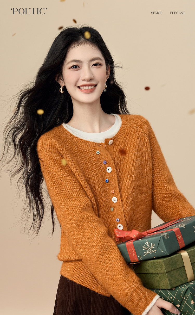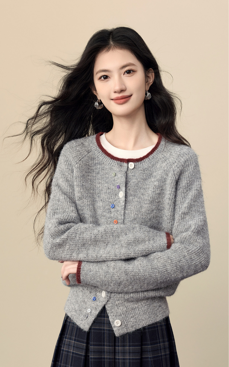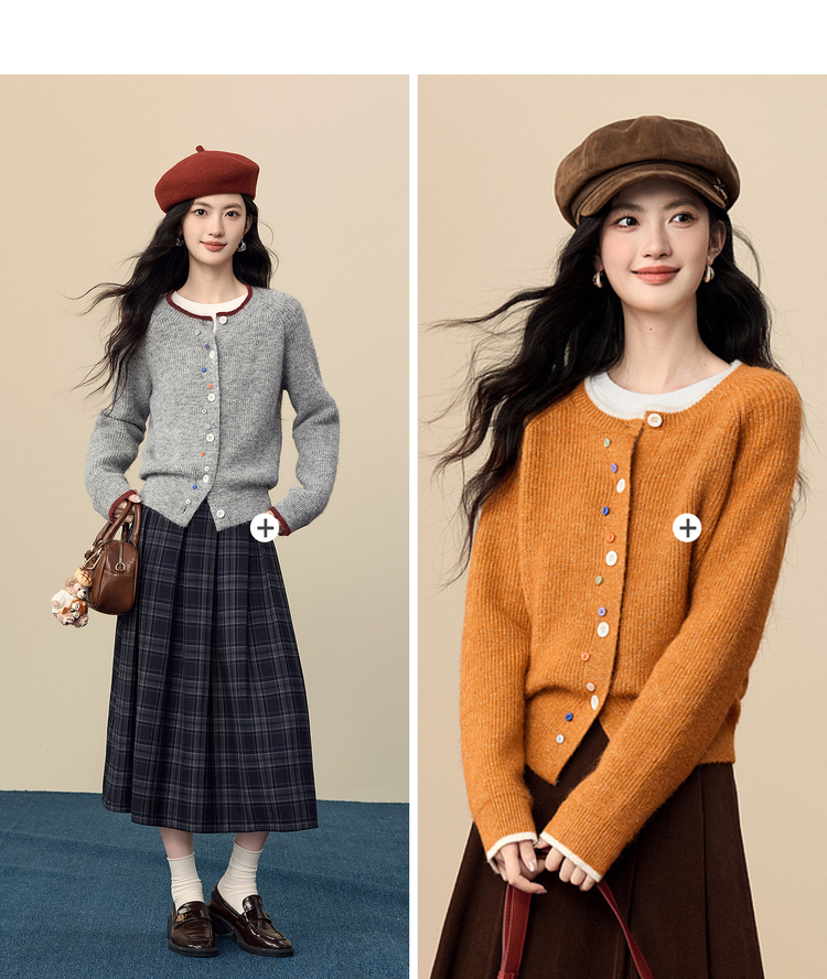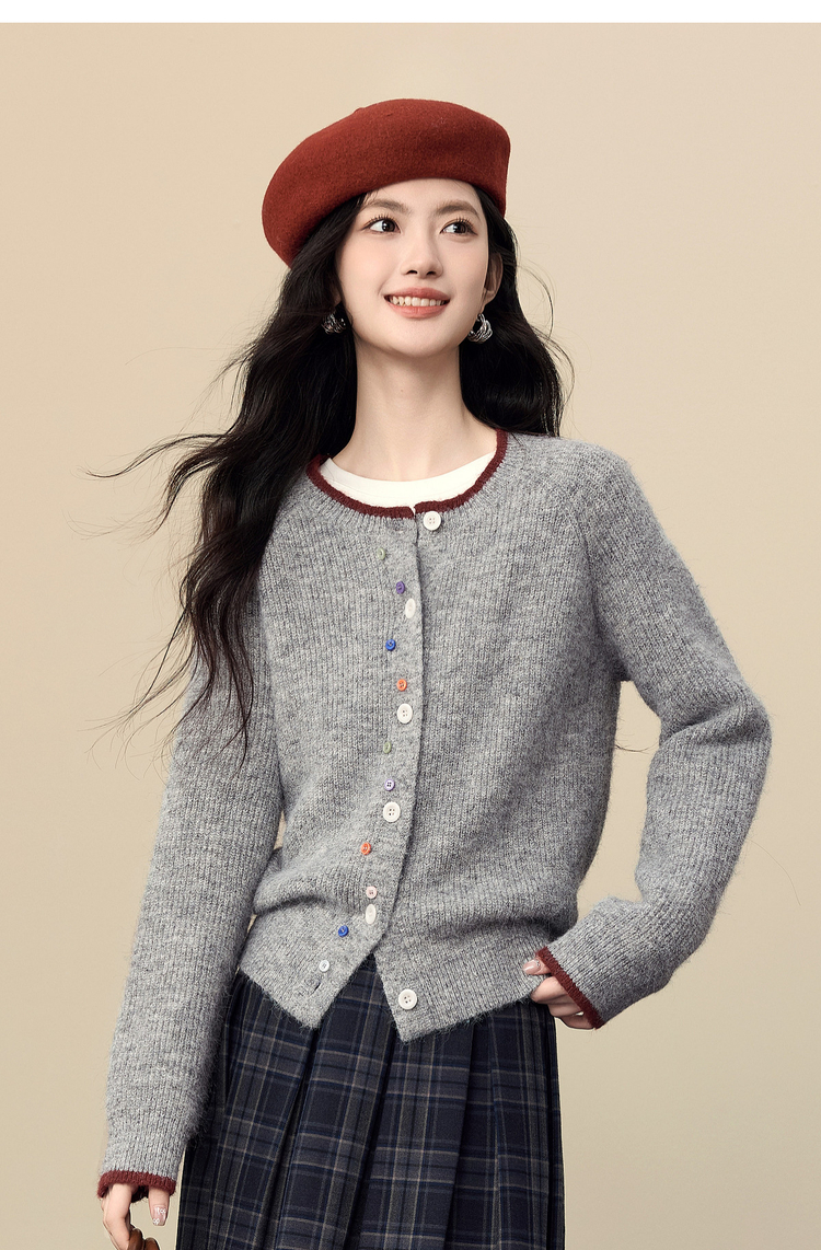 【周四狂欢价】熙世界彩色纽扣厚款毛衣开衫女2025年秋冬新款软糯仿羊驼毛针织衫