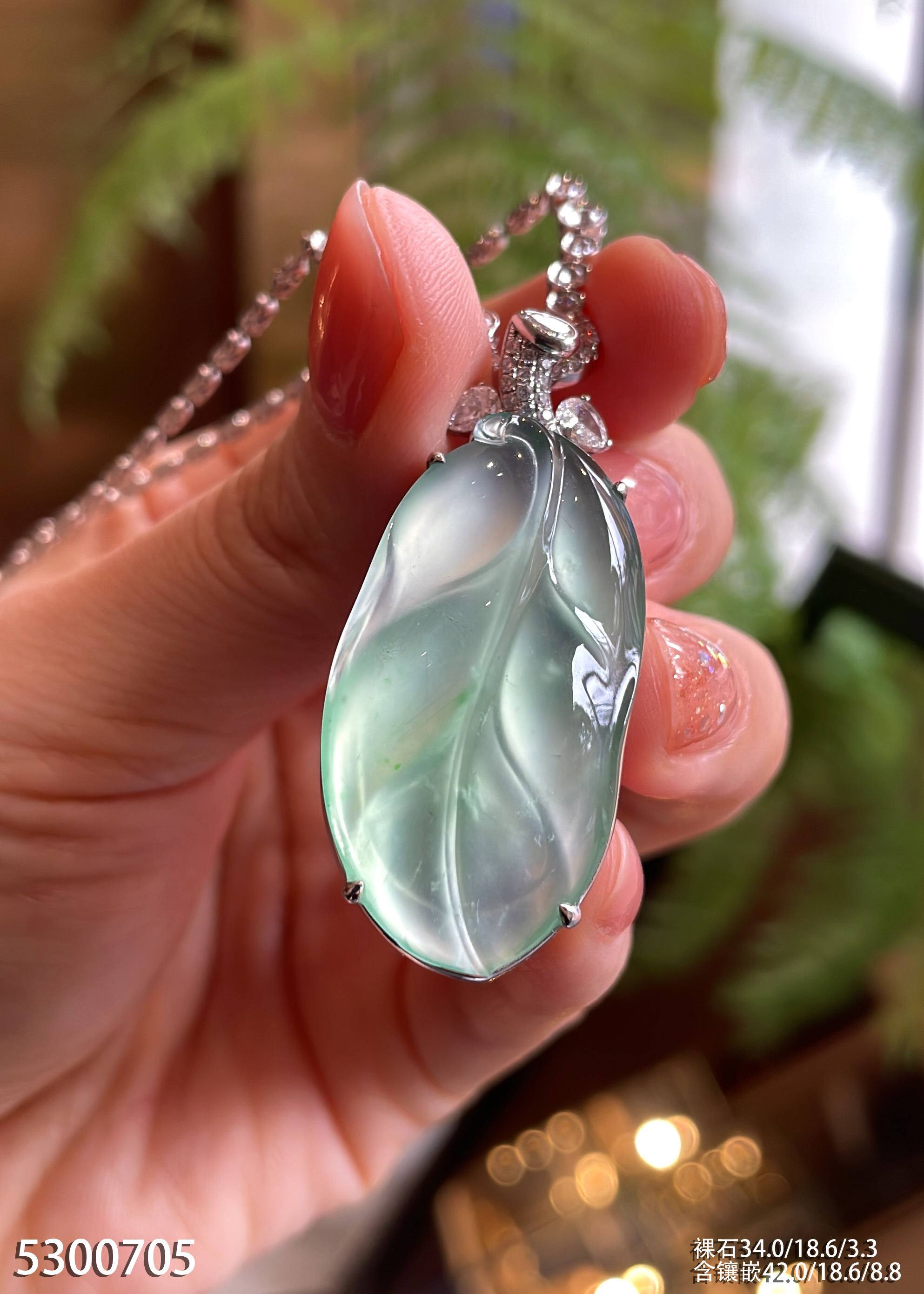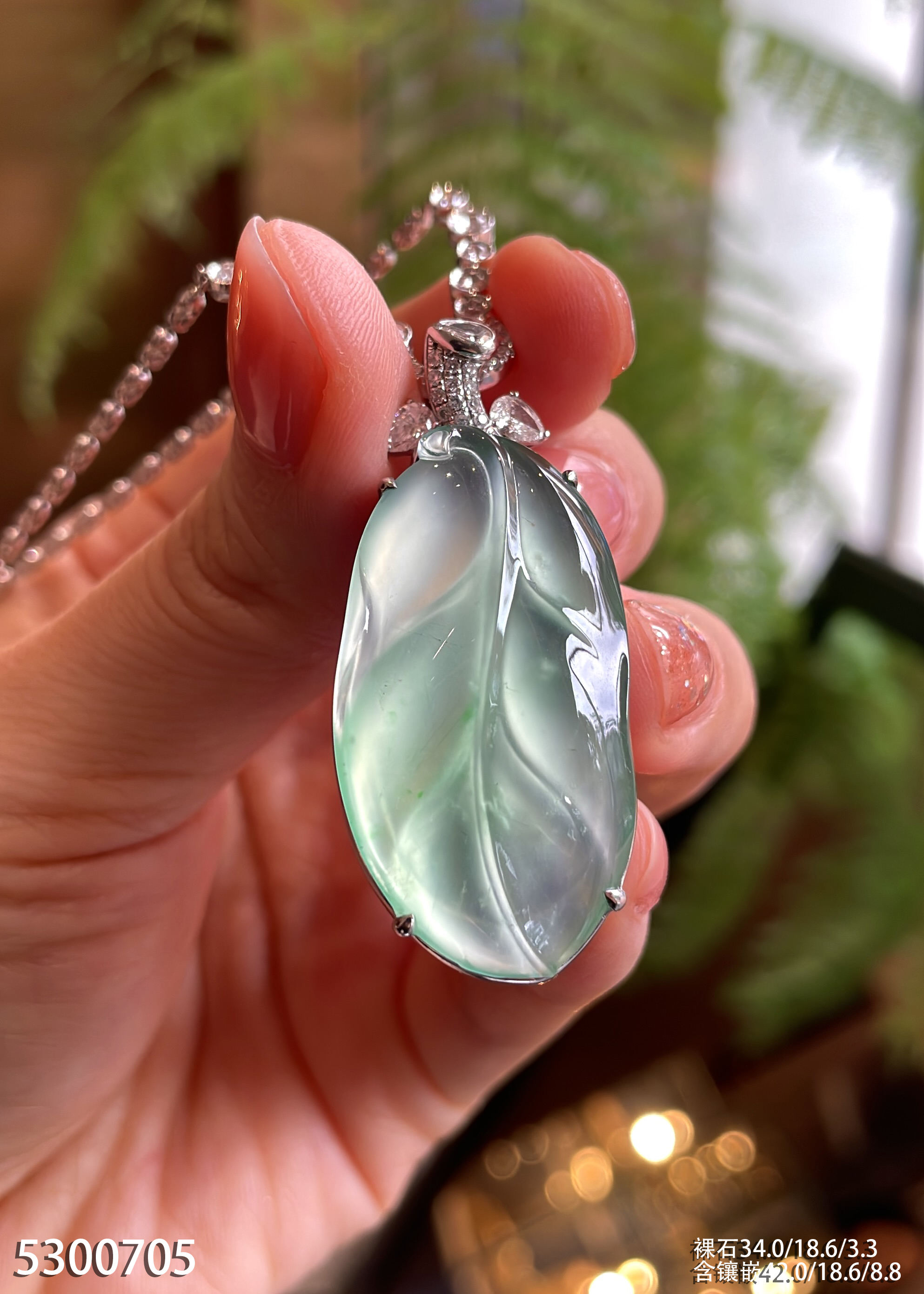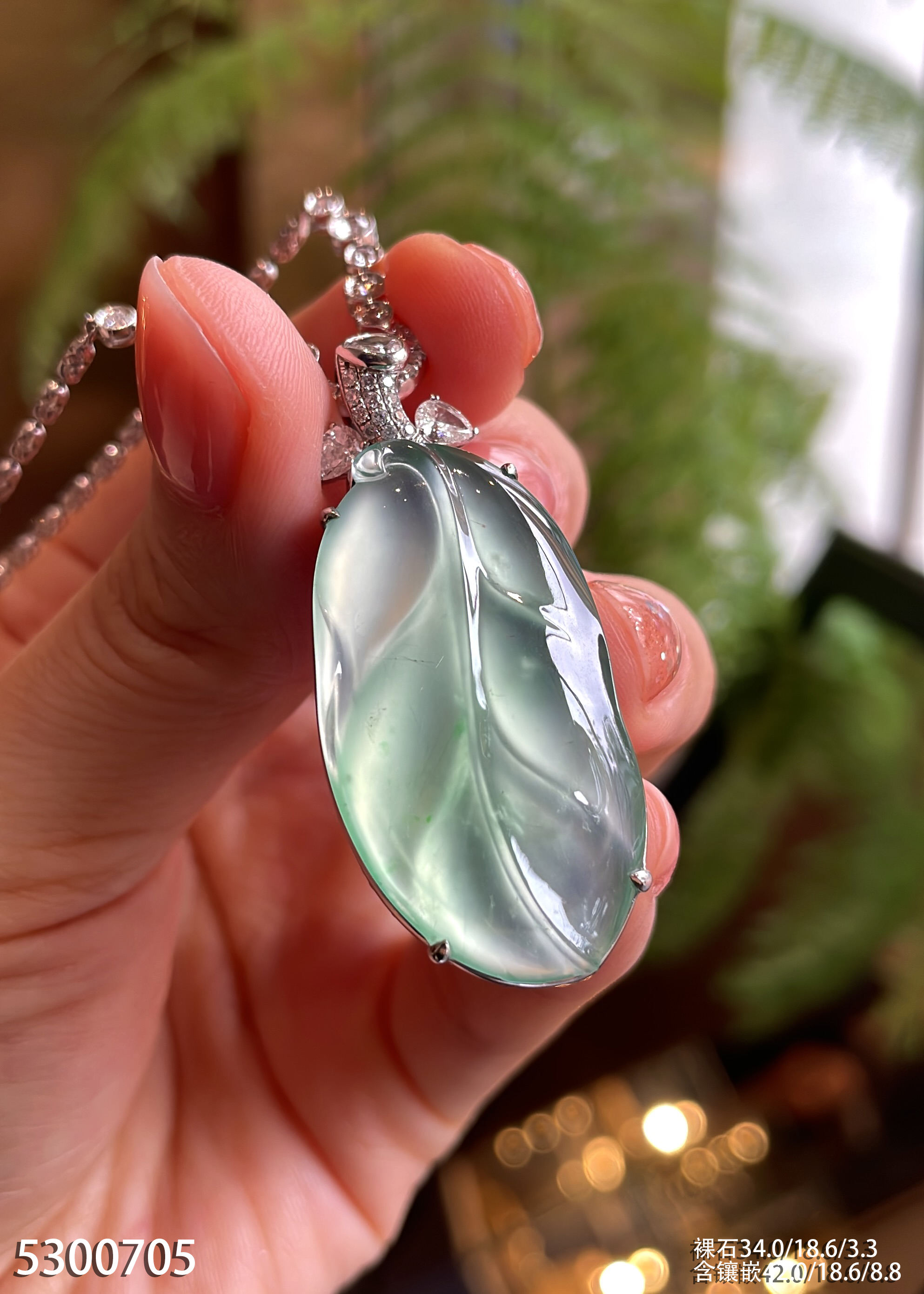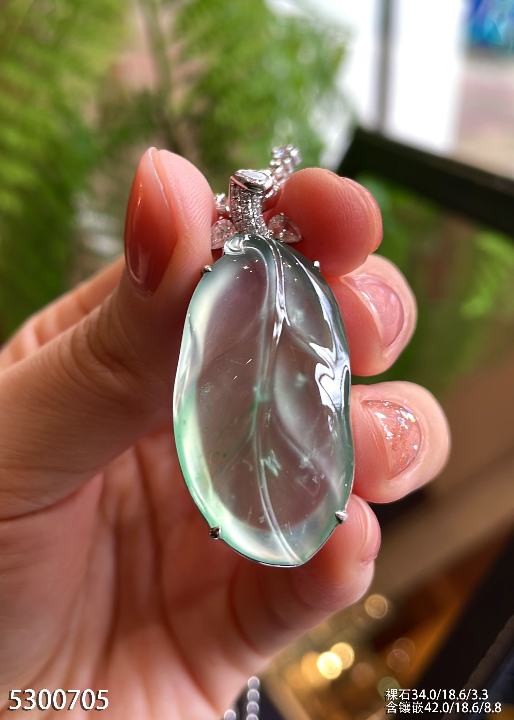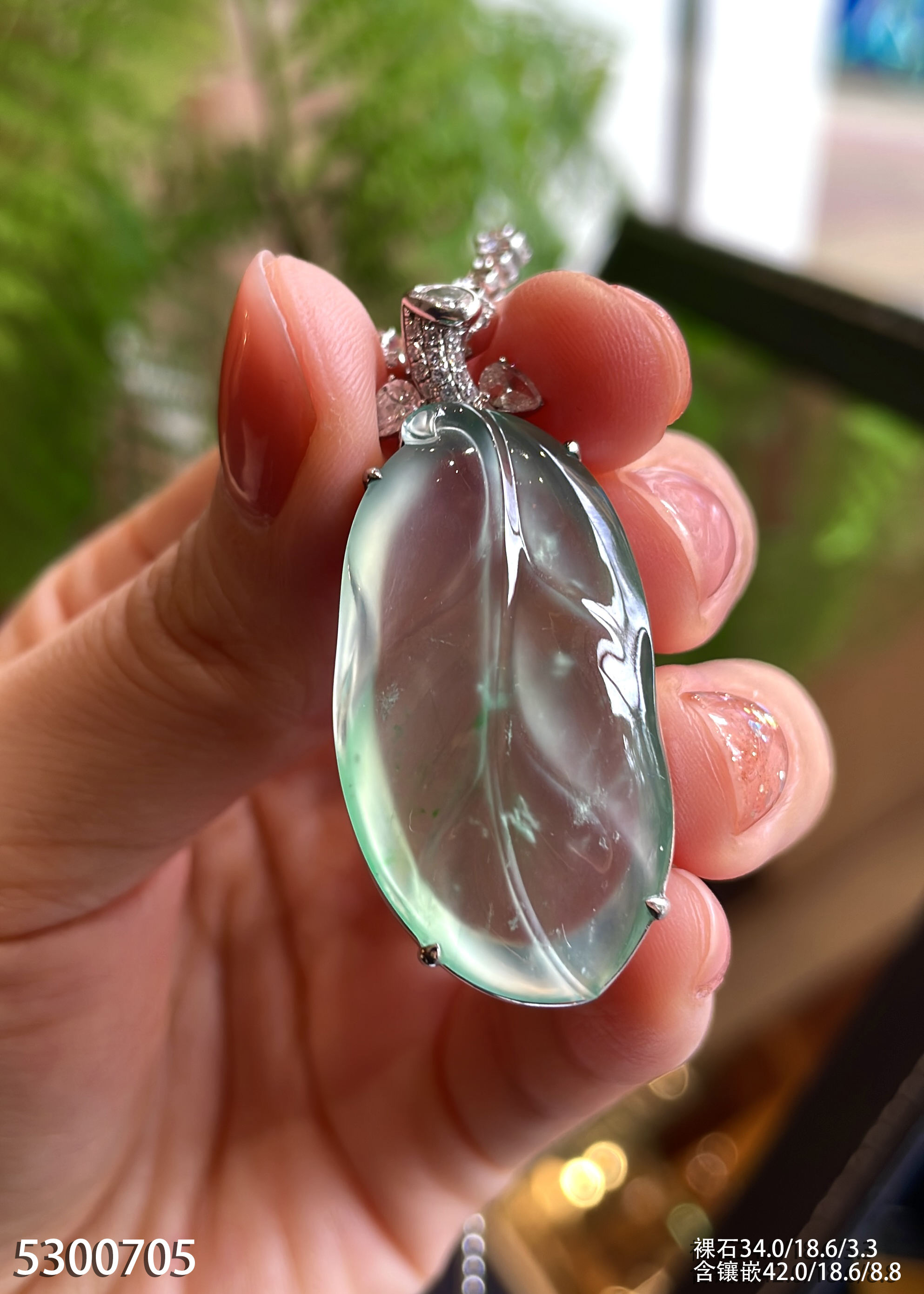 玻璃种飘翠叶子吊坠 79999【5300705】