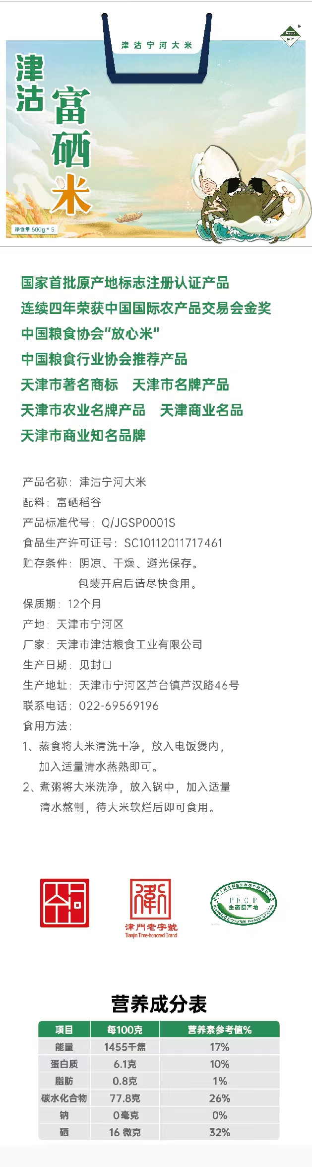 津农精品 津沽宁河富硒大米2.5Kg