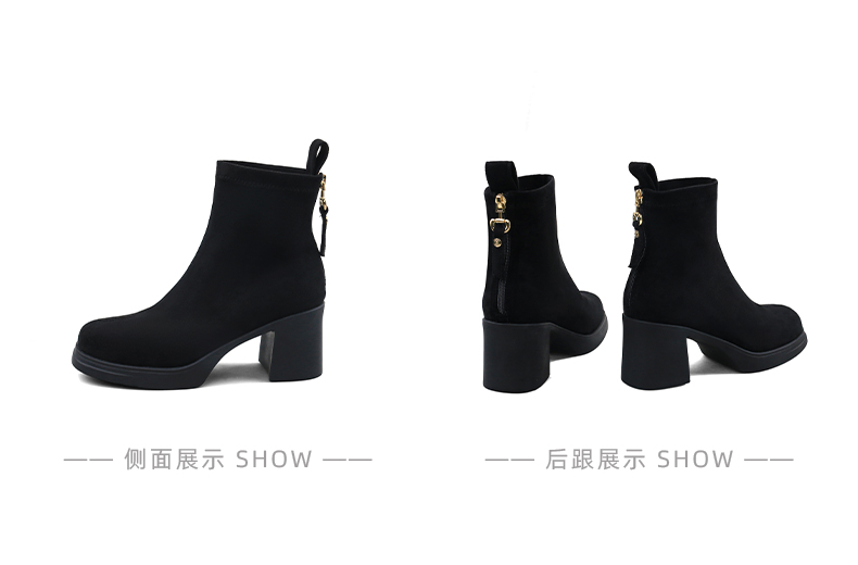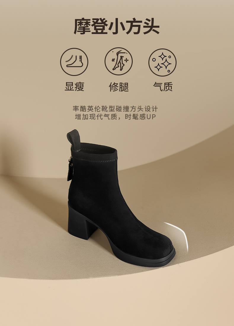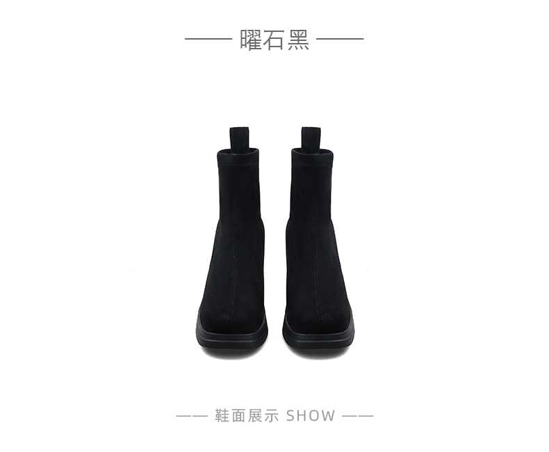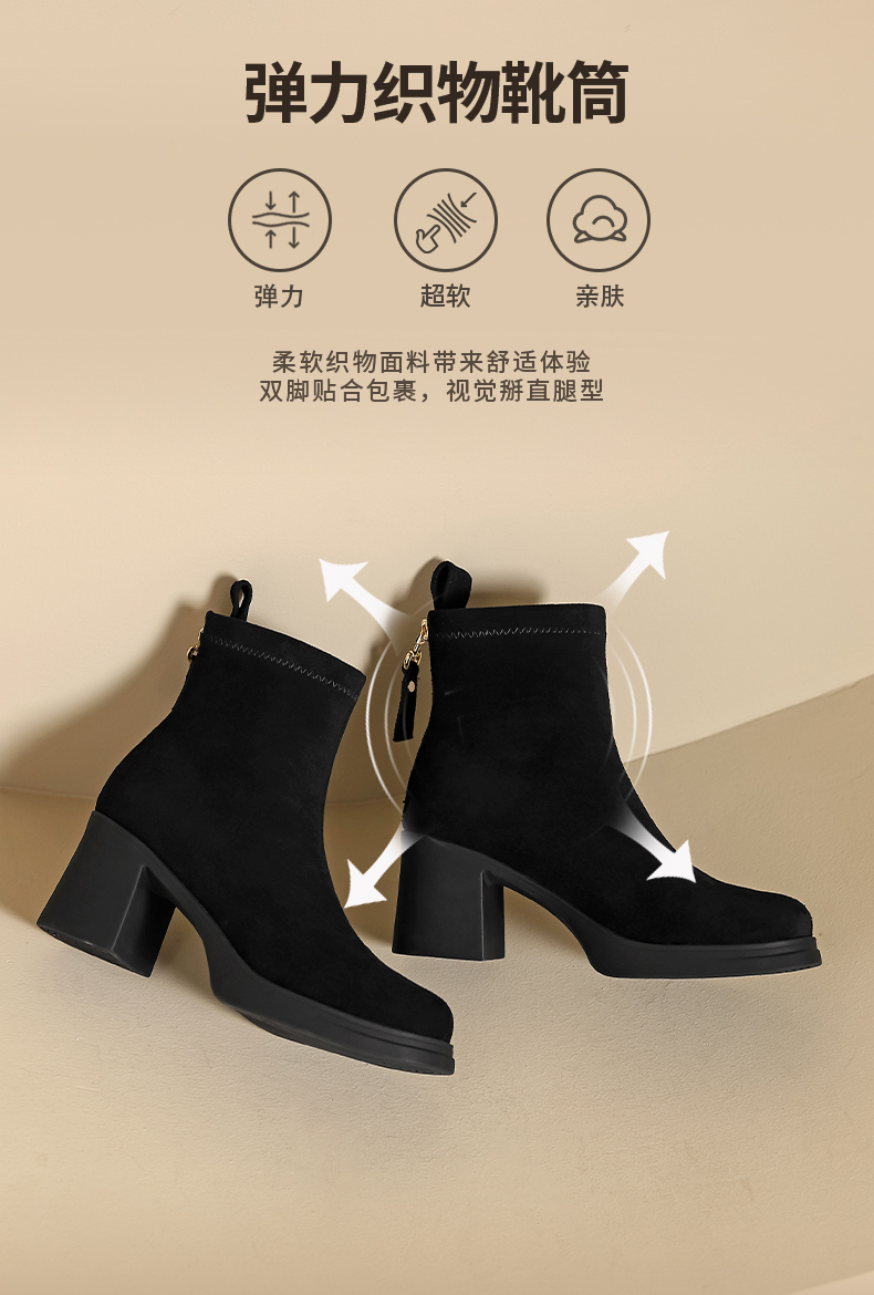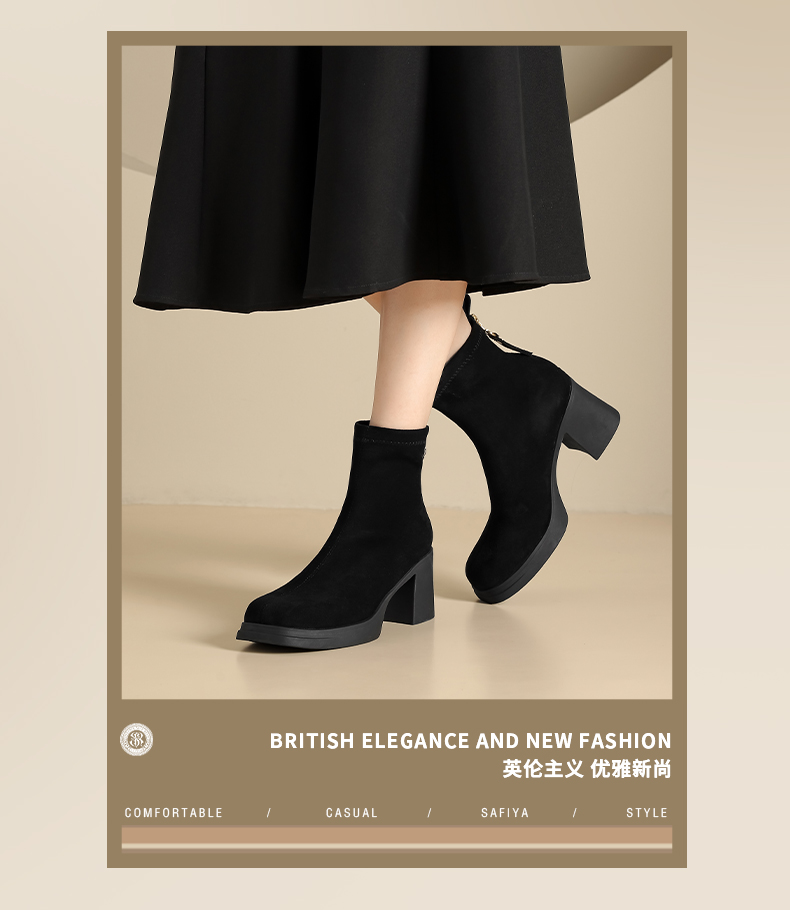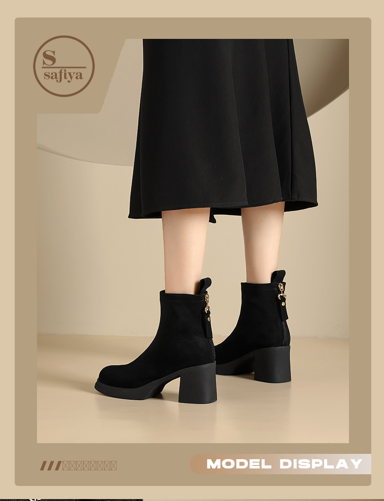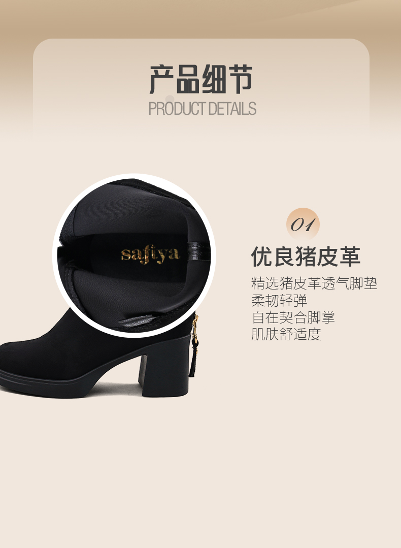 Safiya/索菲娅2024冬 英伦风方头小众粗跟设计感瘦瘦弹力时尚短靴 SF44116093/SFD4116093