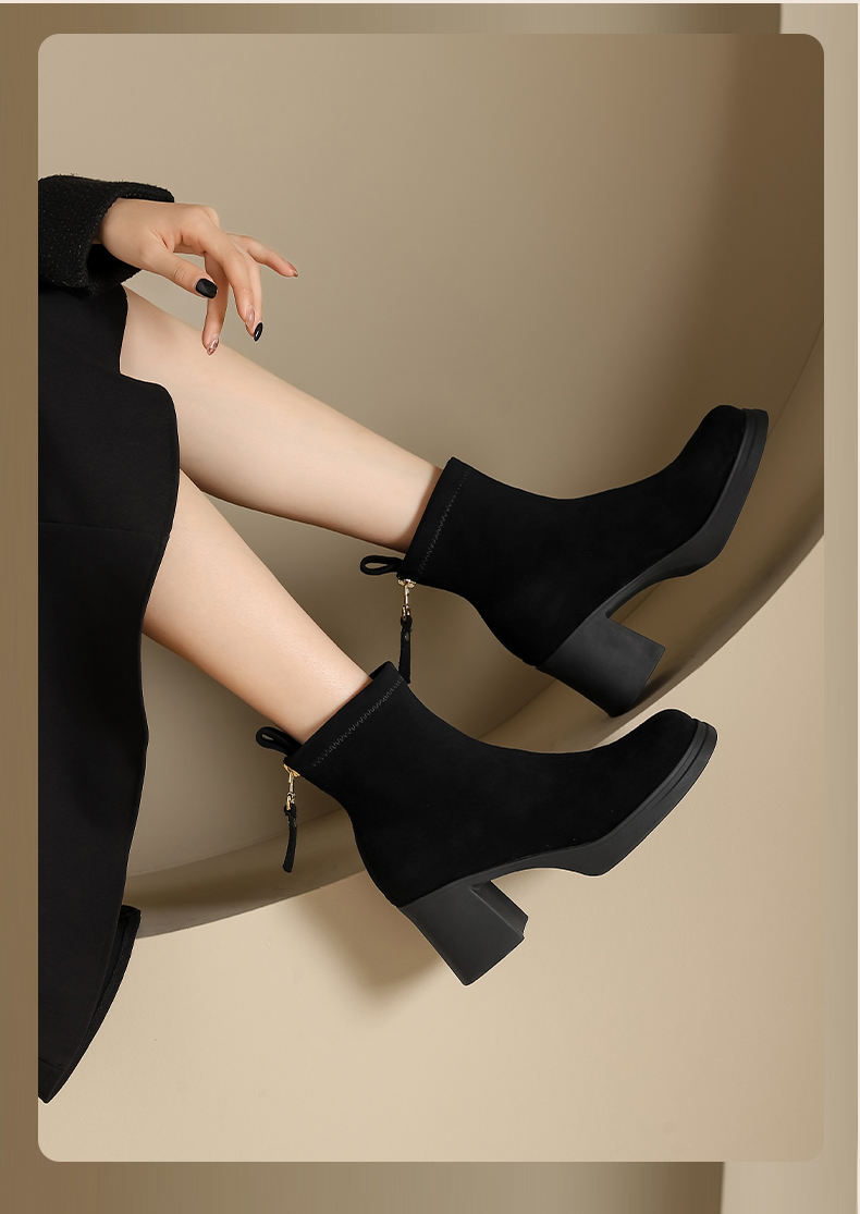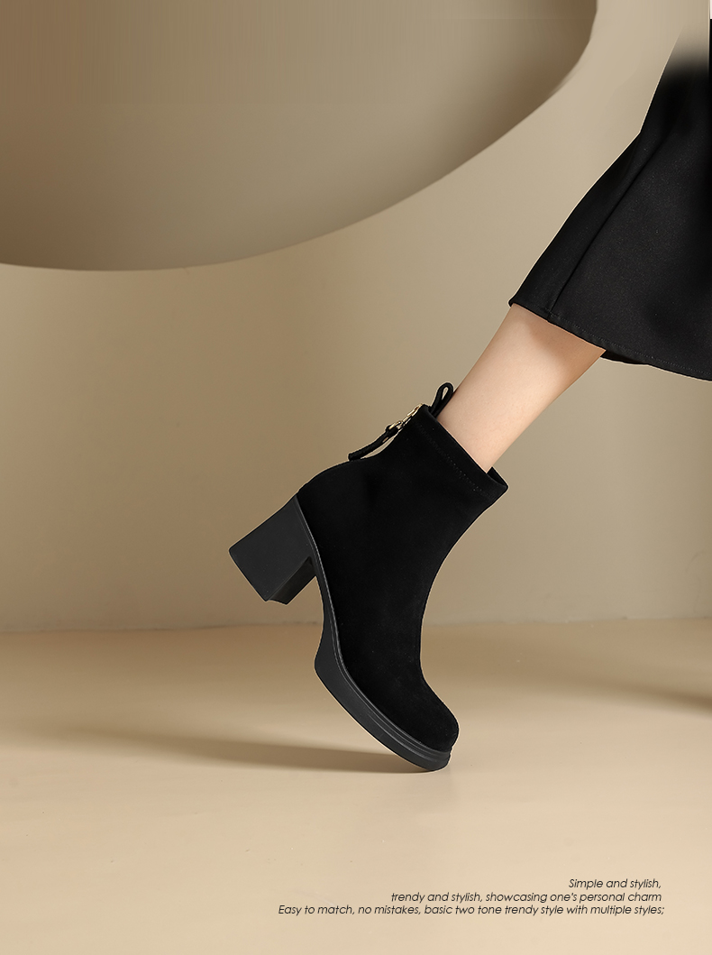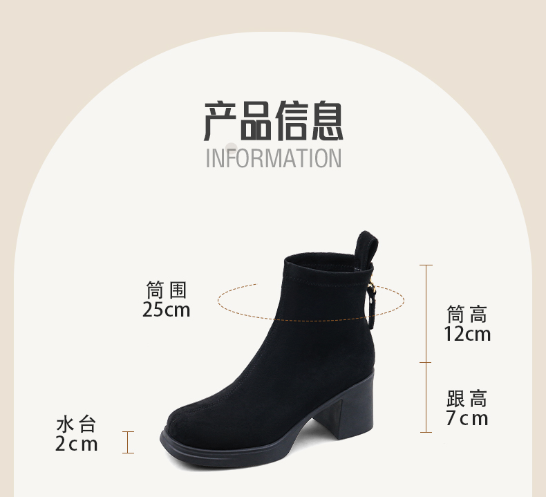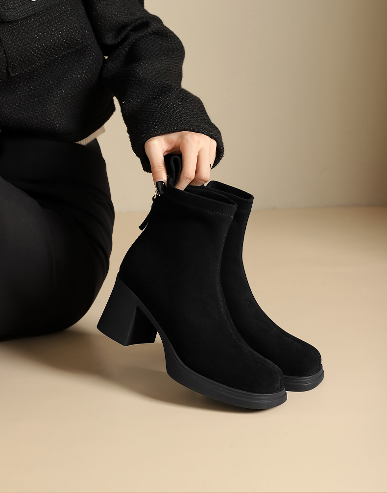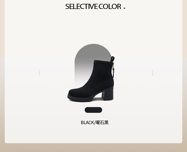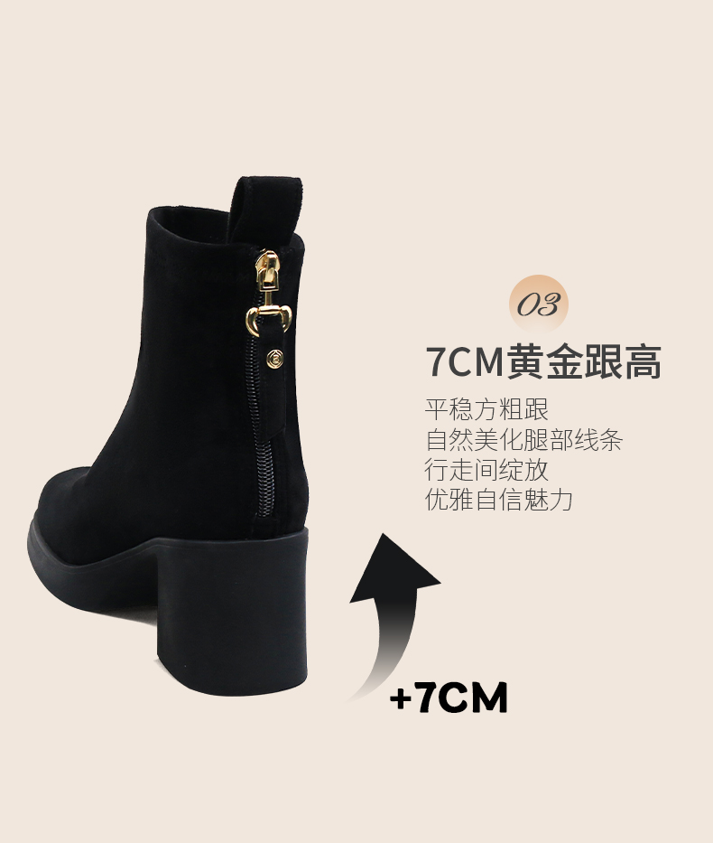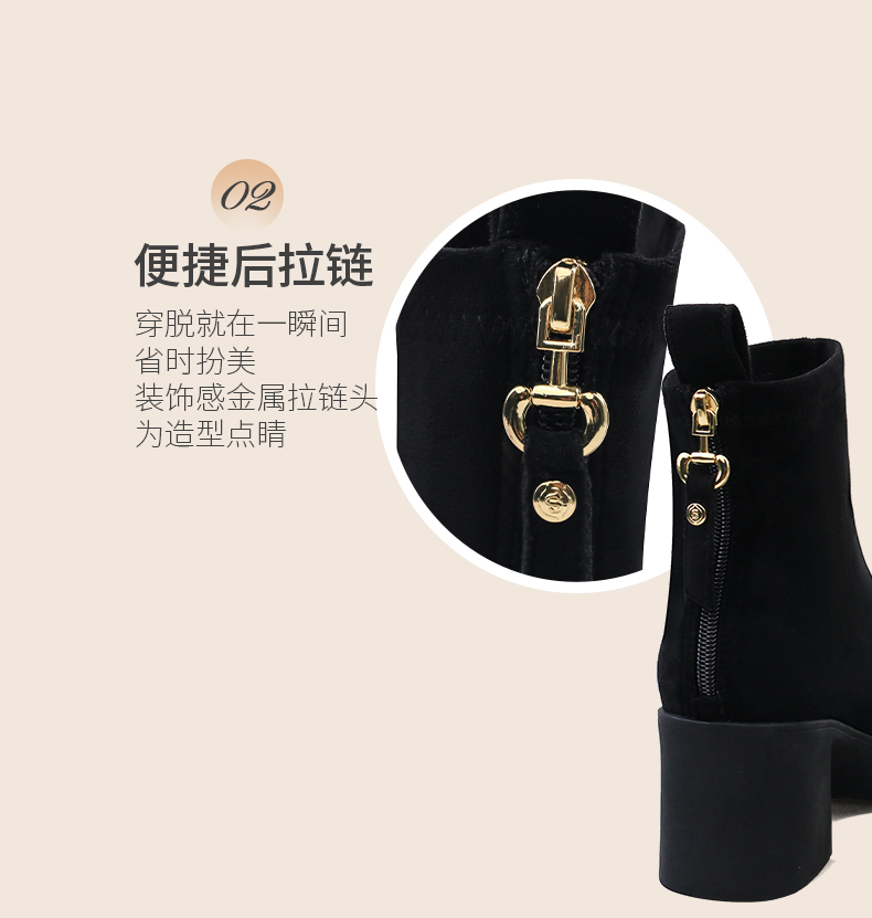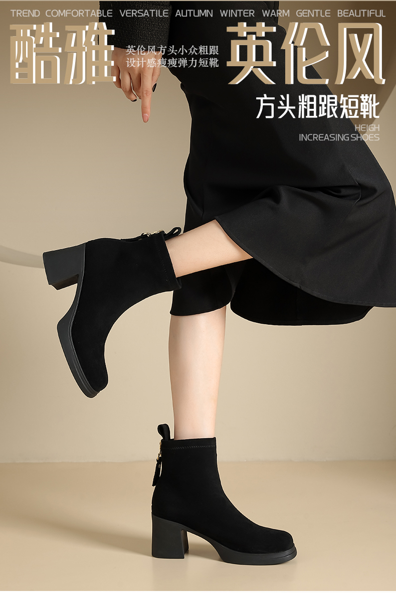 Safiya/索菲娅2024冬 英伦风方头小众粗跟设计感瘦瘦弹力时尚短靴 SF44116093/SFD4116093