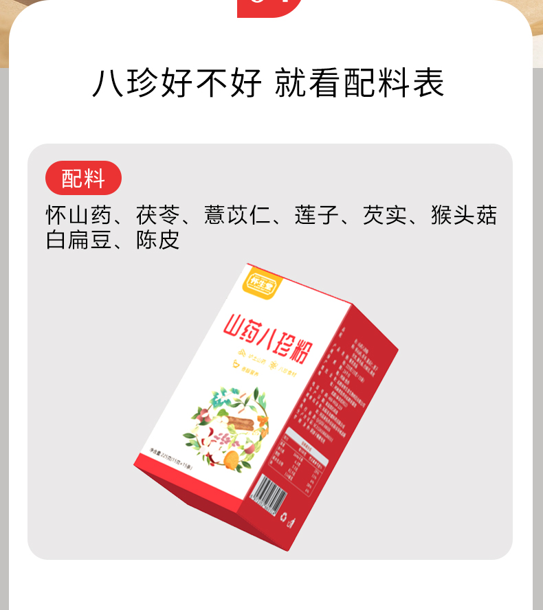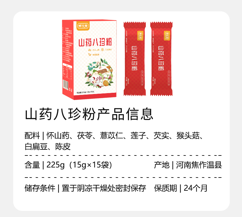 【2024怀生堂】怀生堂山药八珍粉,8珍食材脾胃全面养225g/盒(15g*15袋)