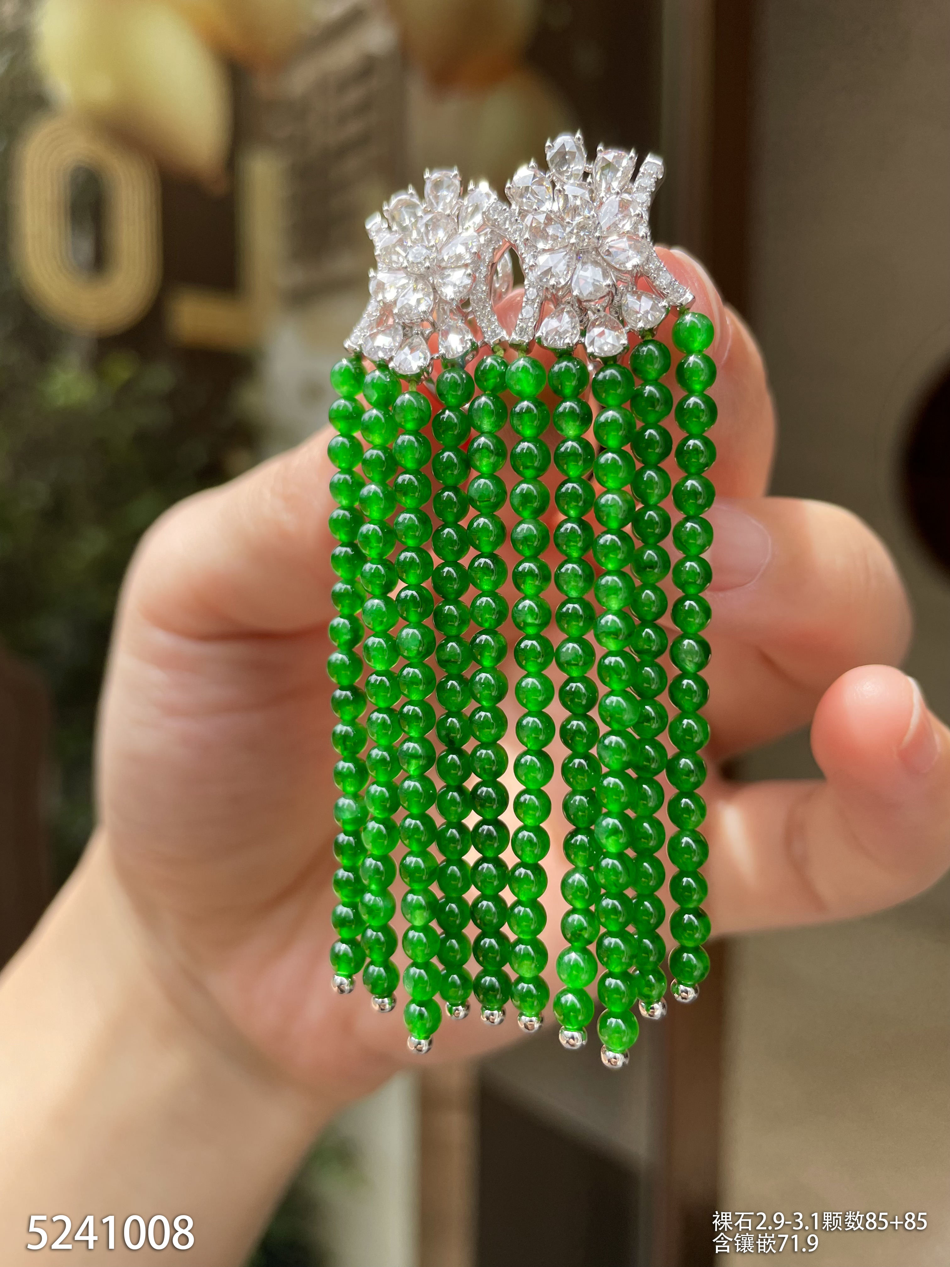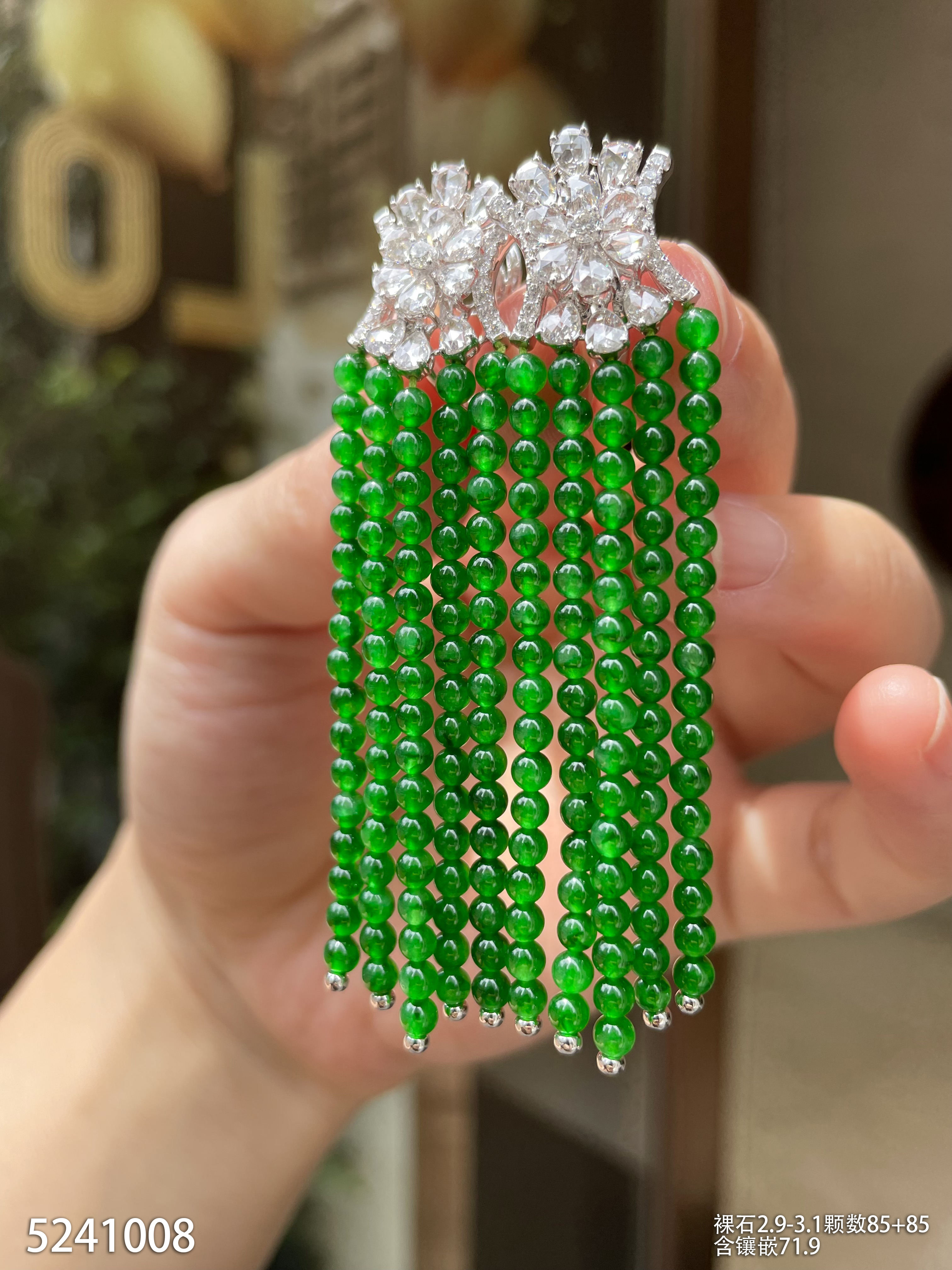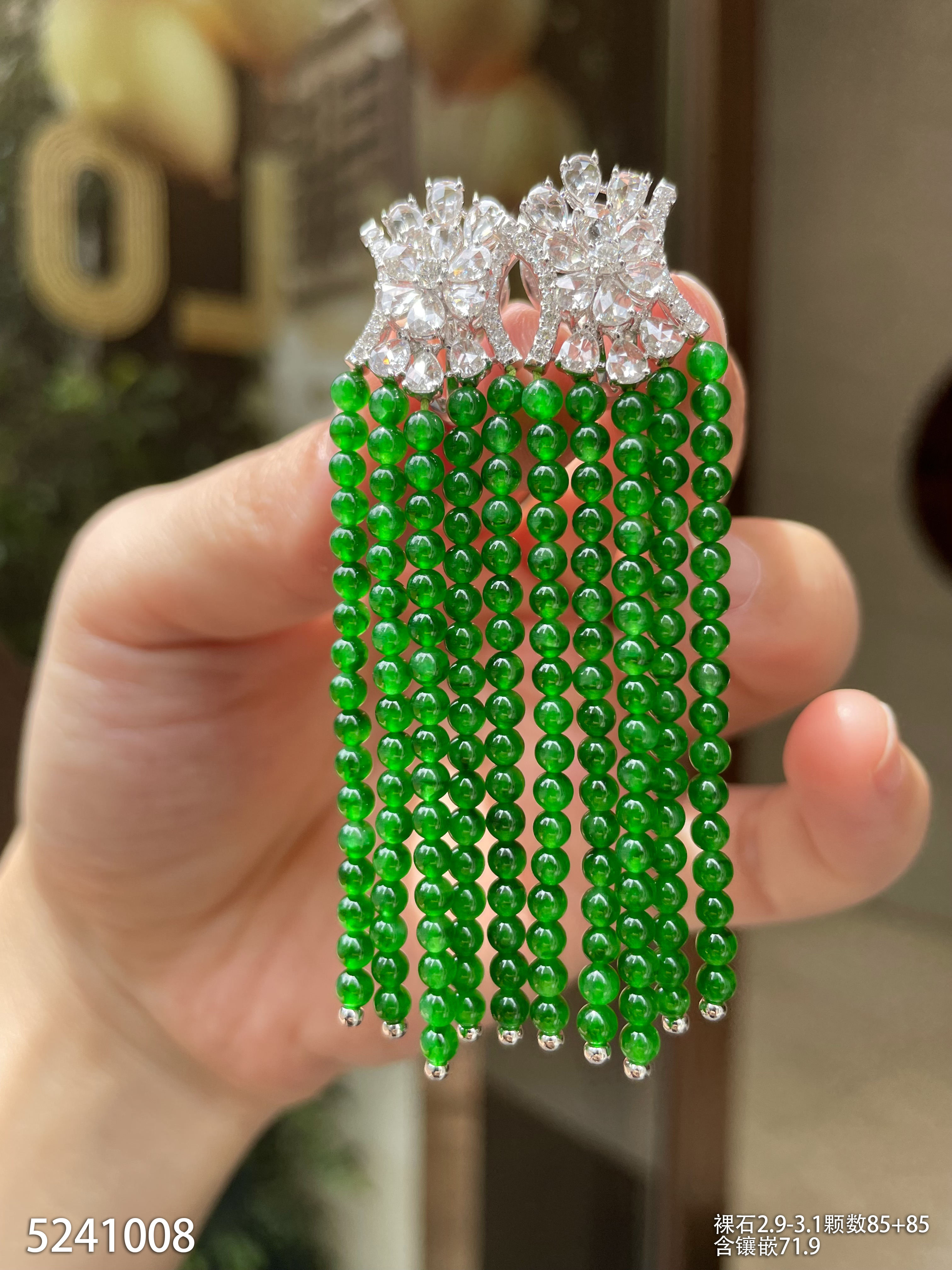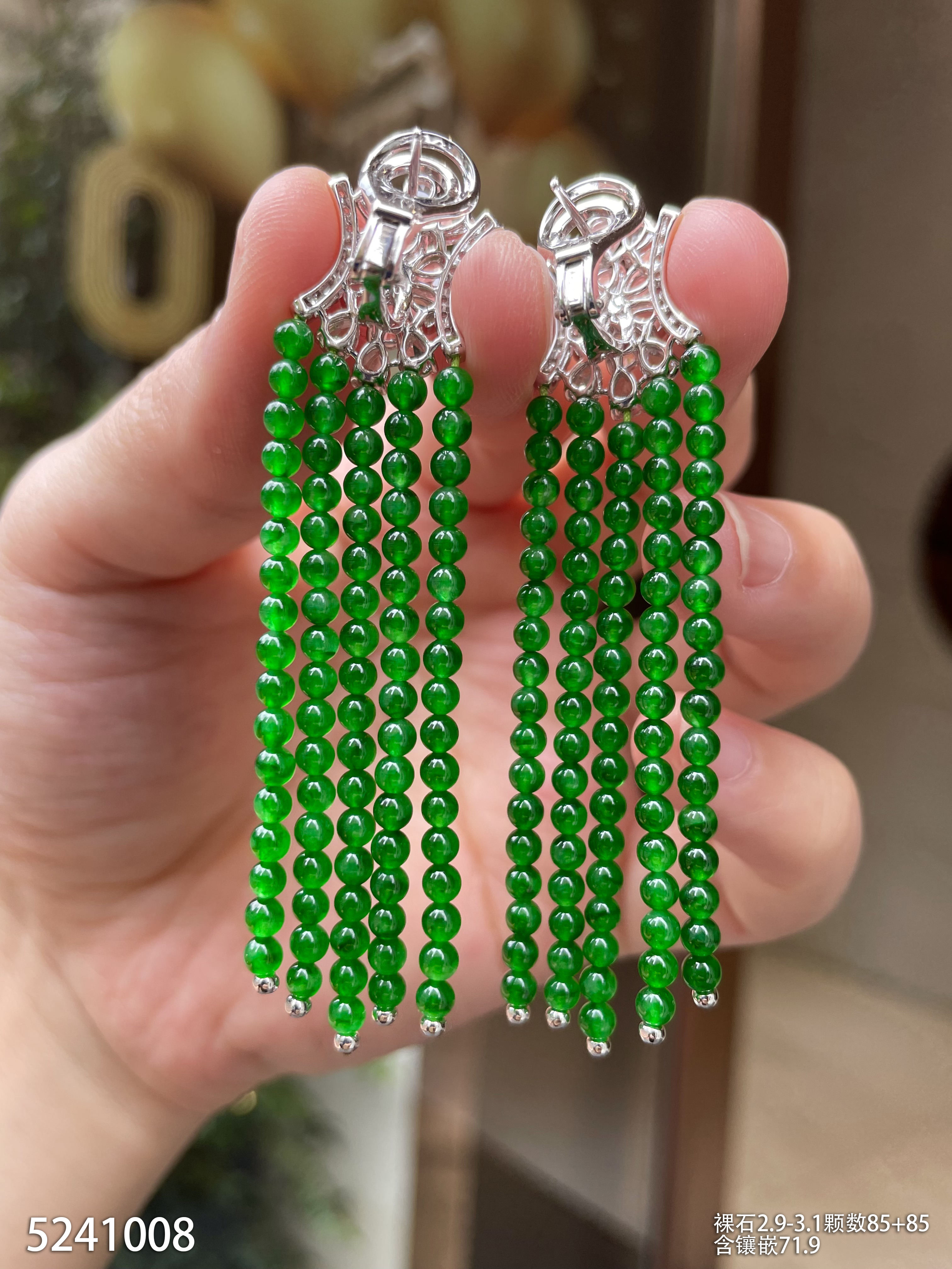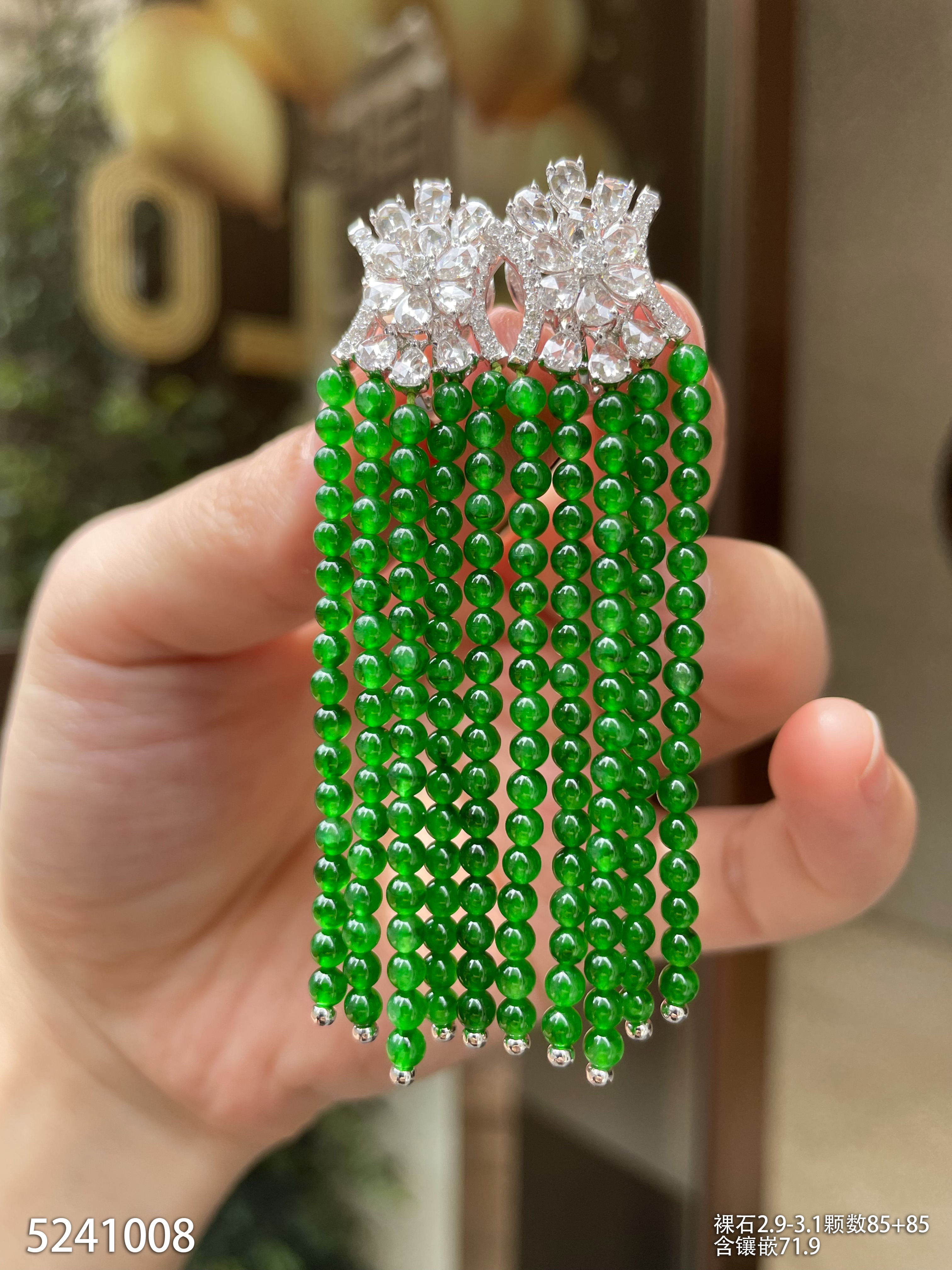 老坑艳绿小米珠耳坠【5241008】具体价格微信咨询