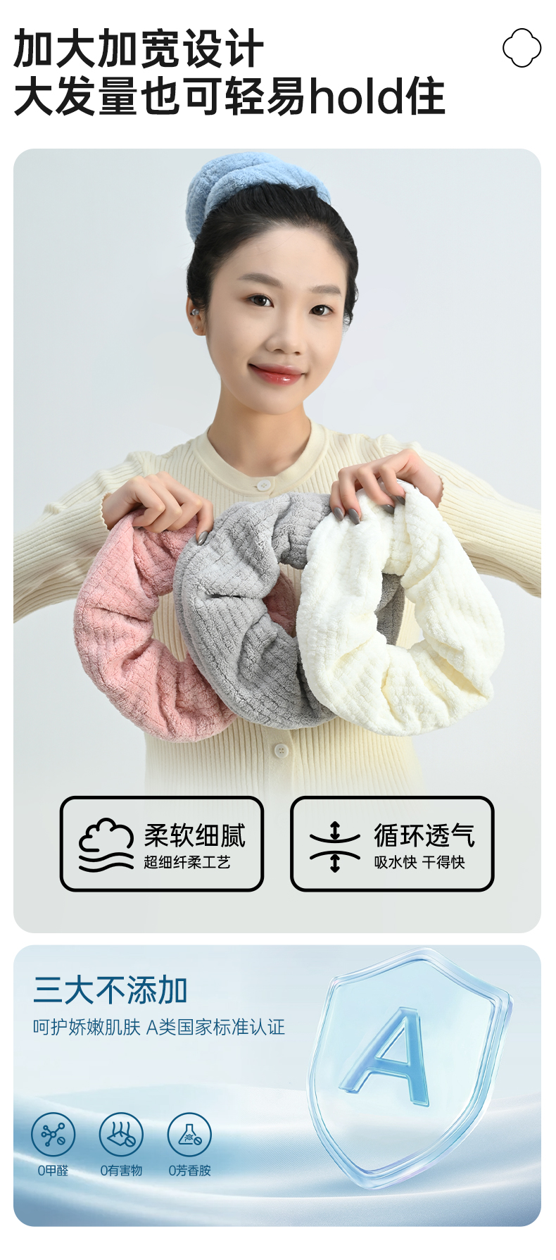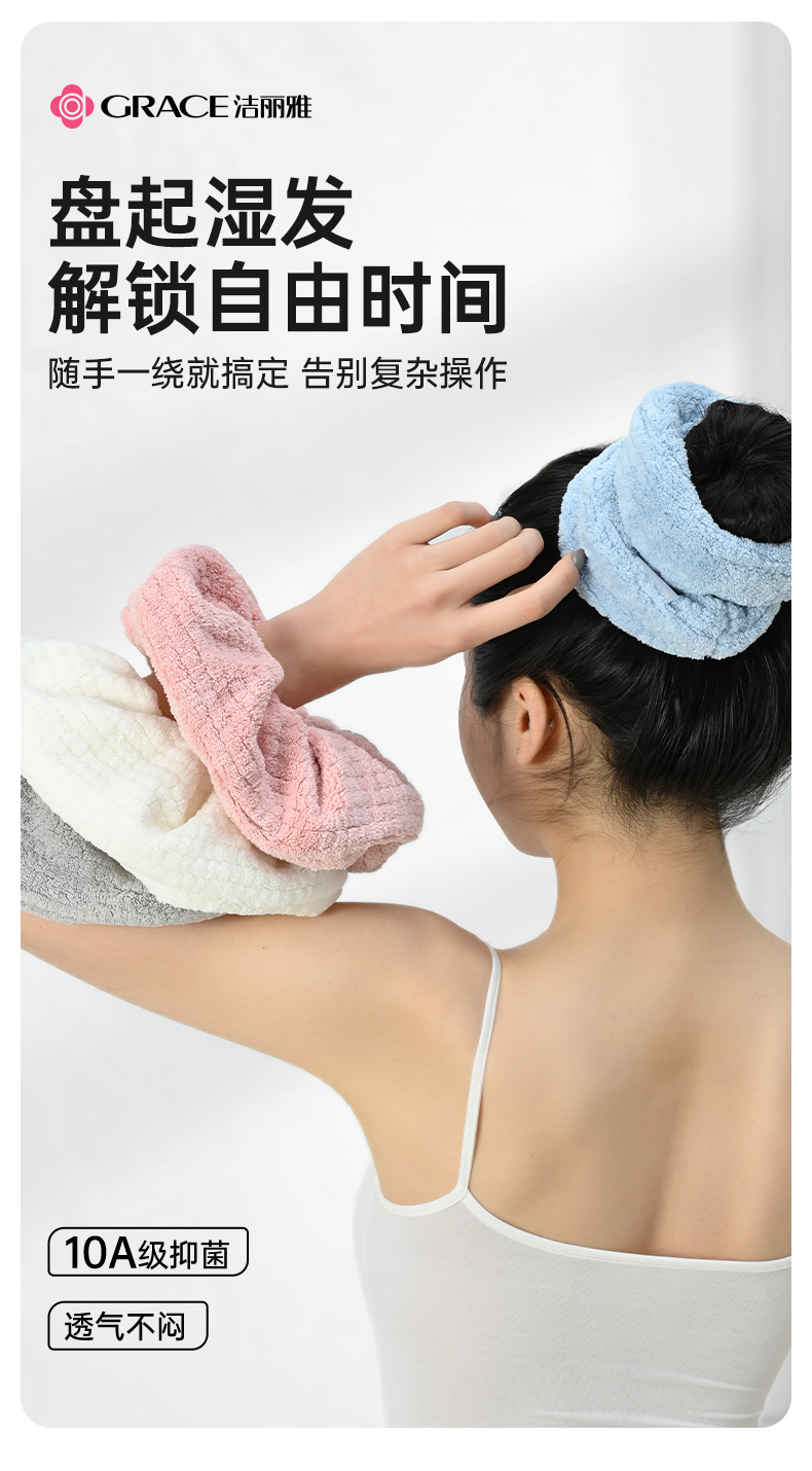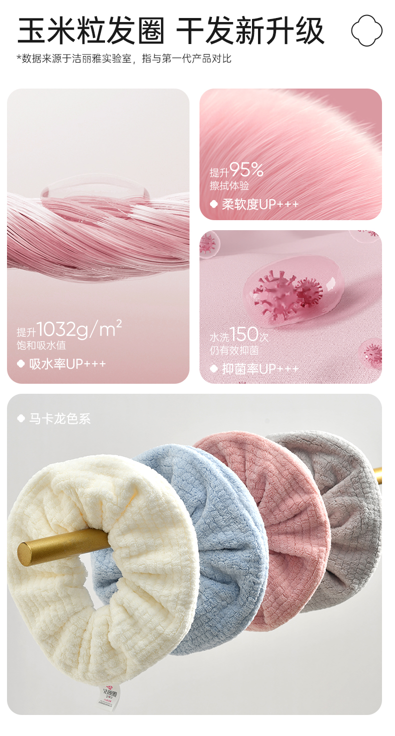 洁丽雅束发带吸水10A抑菌干发圈盘发护发2025新款加大玉米粒包头
