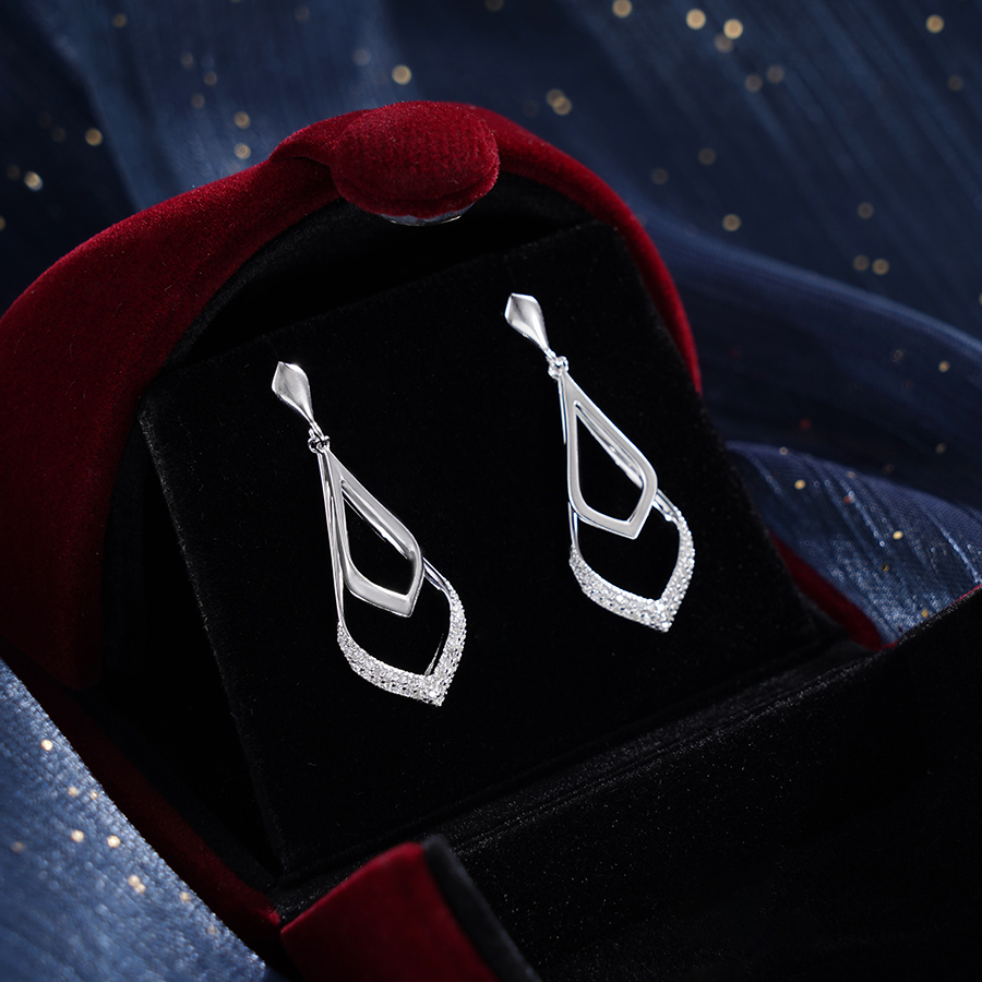 【寓意】:耳饰采用镂空设计,纯银材质使用抛光工艺,水滴造型镶嵌璀璨锆石,宛如水珠欲滴,闪闪熠熠。整体优雅明艳,轻灵细腻。