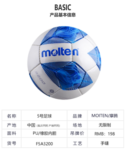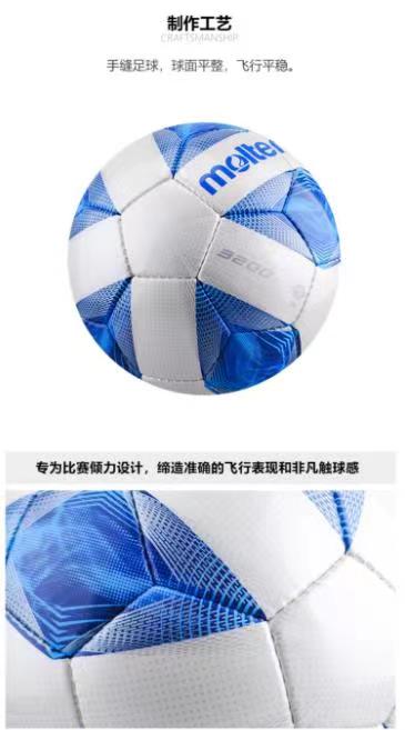molten摩腾足球5号标准成人4号3号儿童耐磨通用手缝PU丁基内胆比赛足球F5A3200