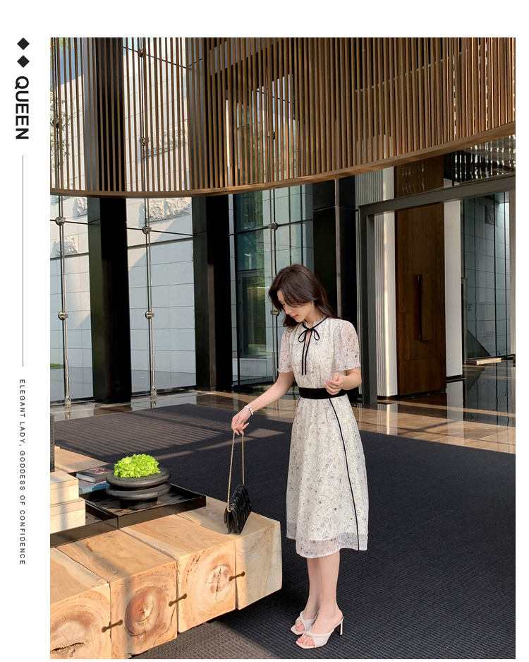 奢姿大码女装2026夏季时尚小香风圆领连衣裙胖妹妹气质清新长裙9962894552