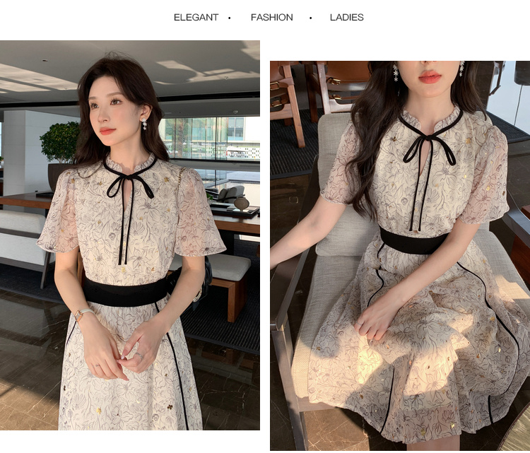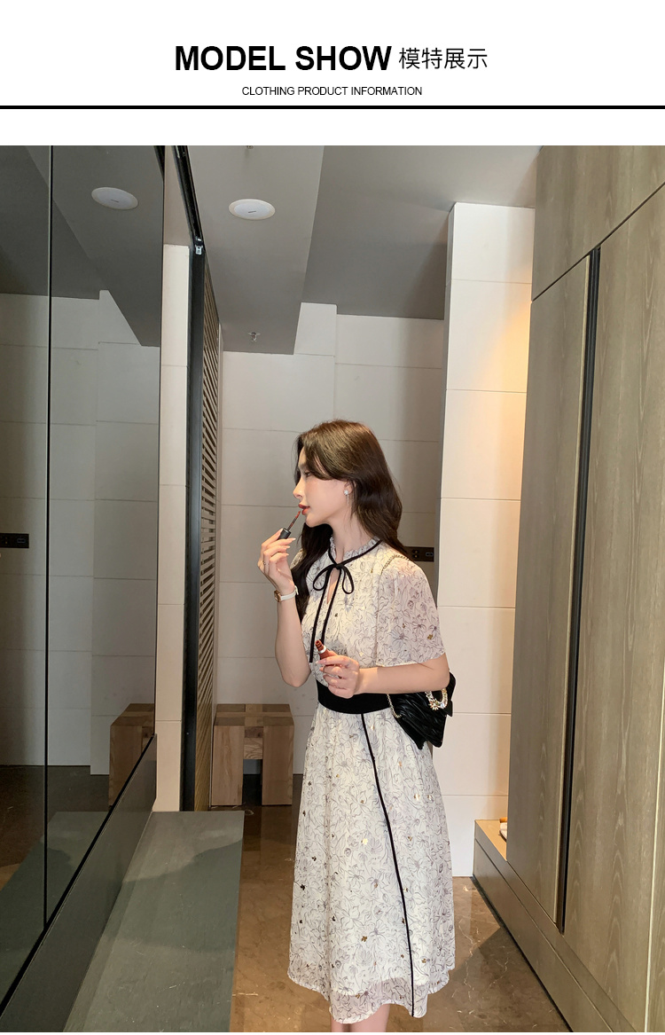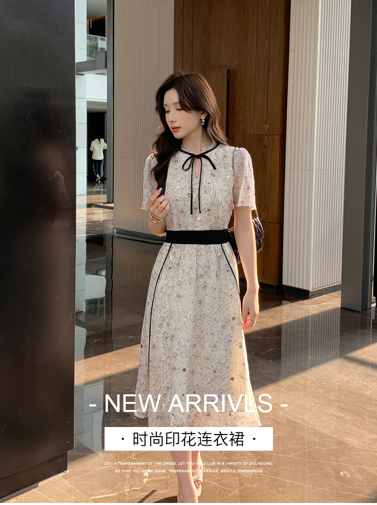 奢姿大码女装2025年夏季新款印花减龄连衣裙胖妹妹蝴蝶结时尚裙子8942890000