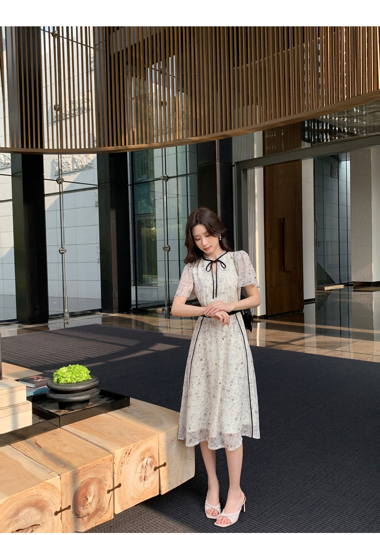 奢姿大码女装2026夏季荷叶边拼接圆领连衣裙胖妹妹简约风时尚裙子9962854509