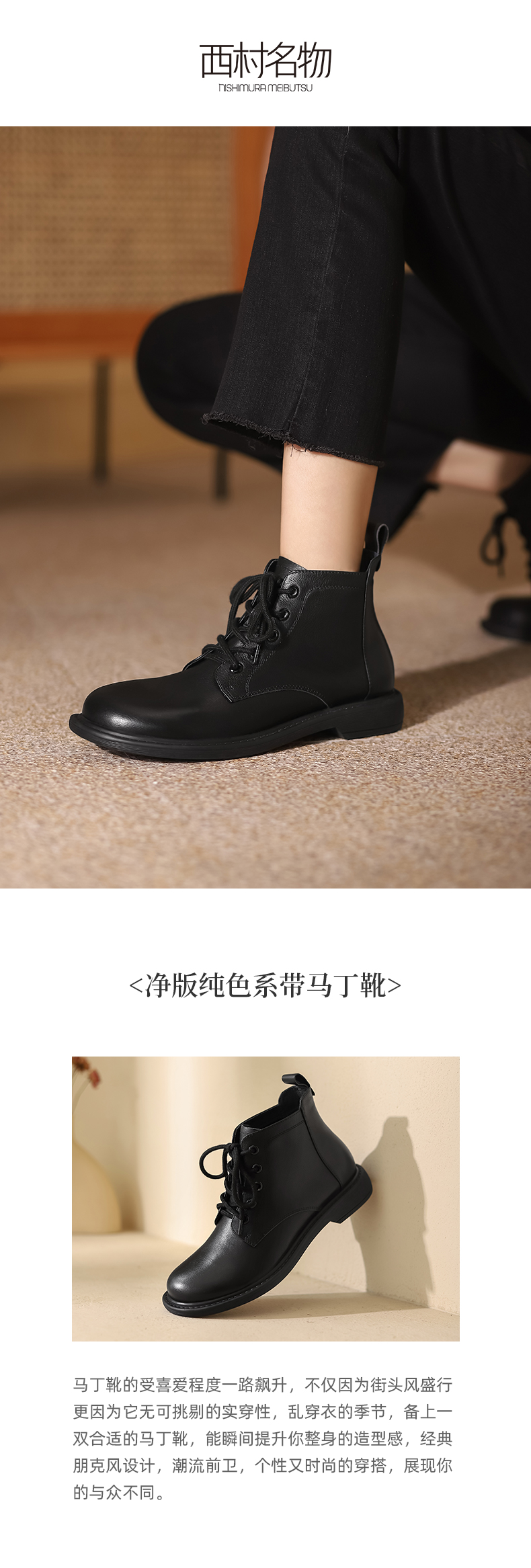 西村名物牛皮薄绒潮流时尚马丁靴X20DS43331