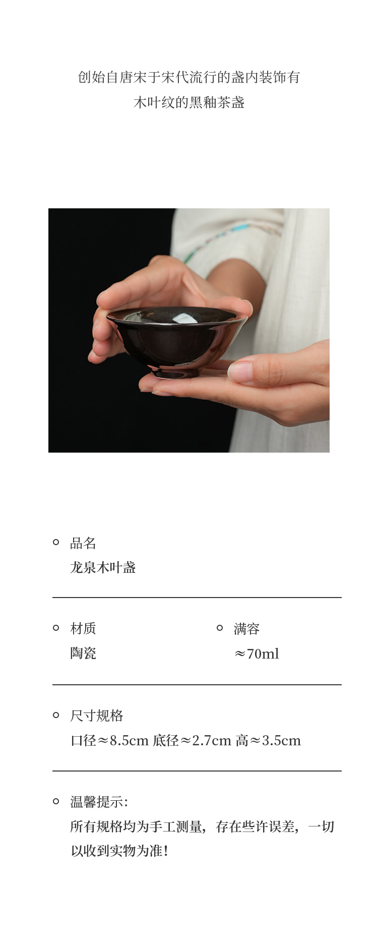 【特价】龙泉木叶盏黑釉茶盏手工陶瓷主人杯单杯小茶碗树叶盏