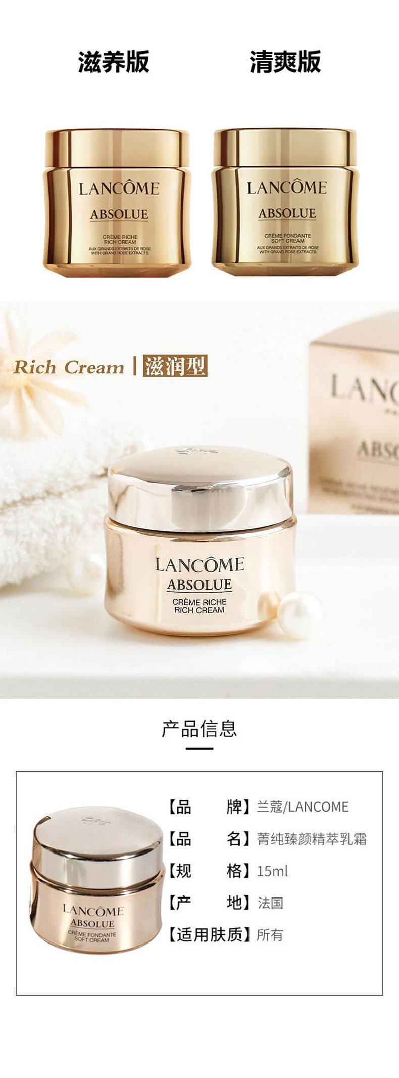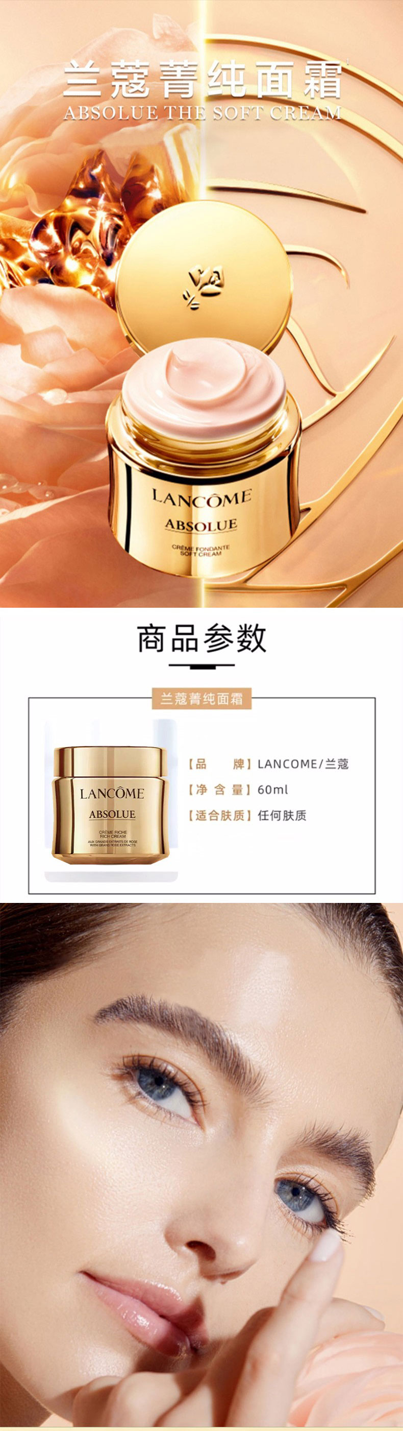 送礼盒礼袋 Lancome兰蔻菁纯面霜60ml 赠兰蔻菁纯面霜15ml*2+极光水50ml*1