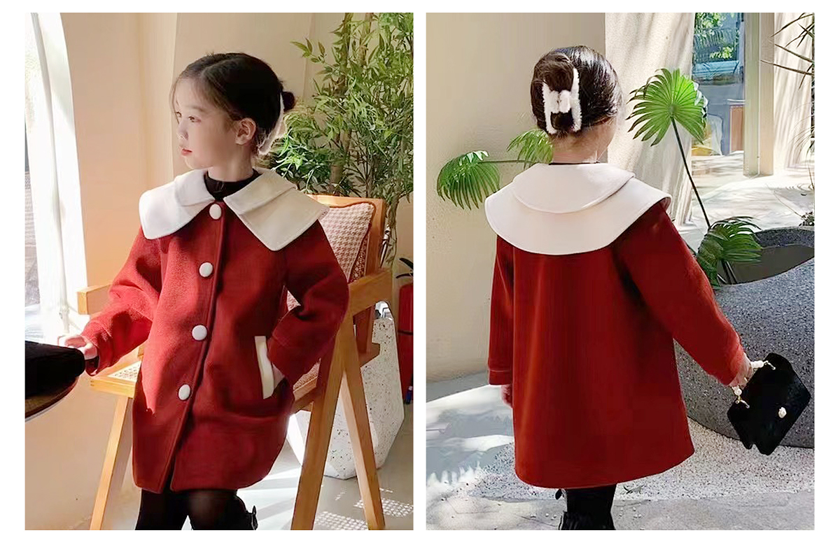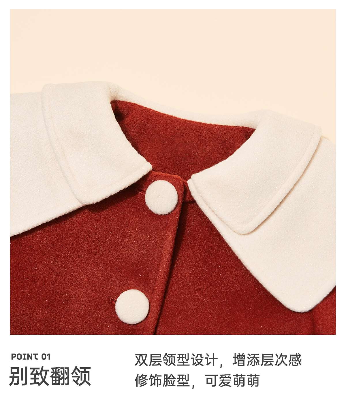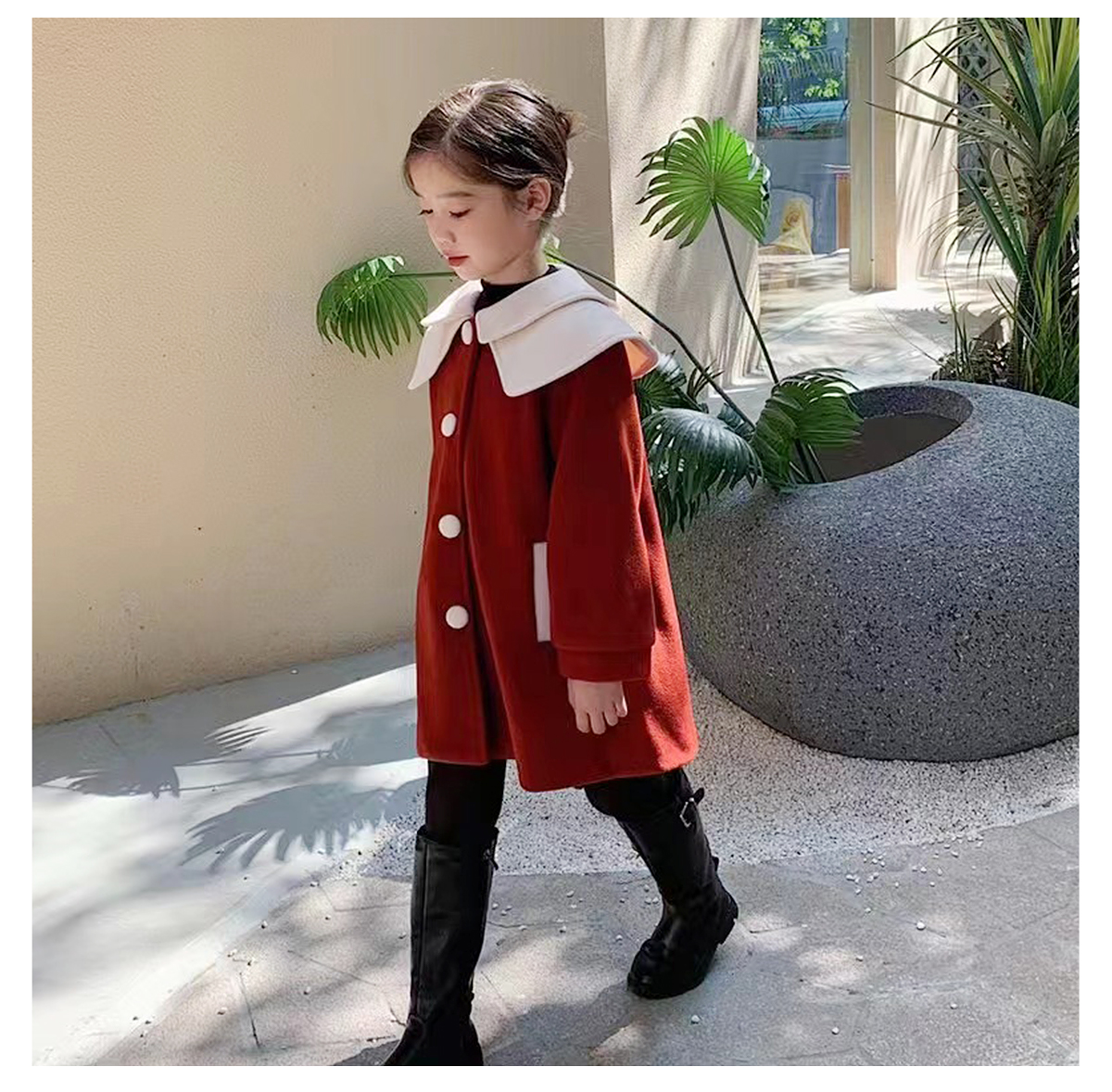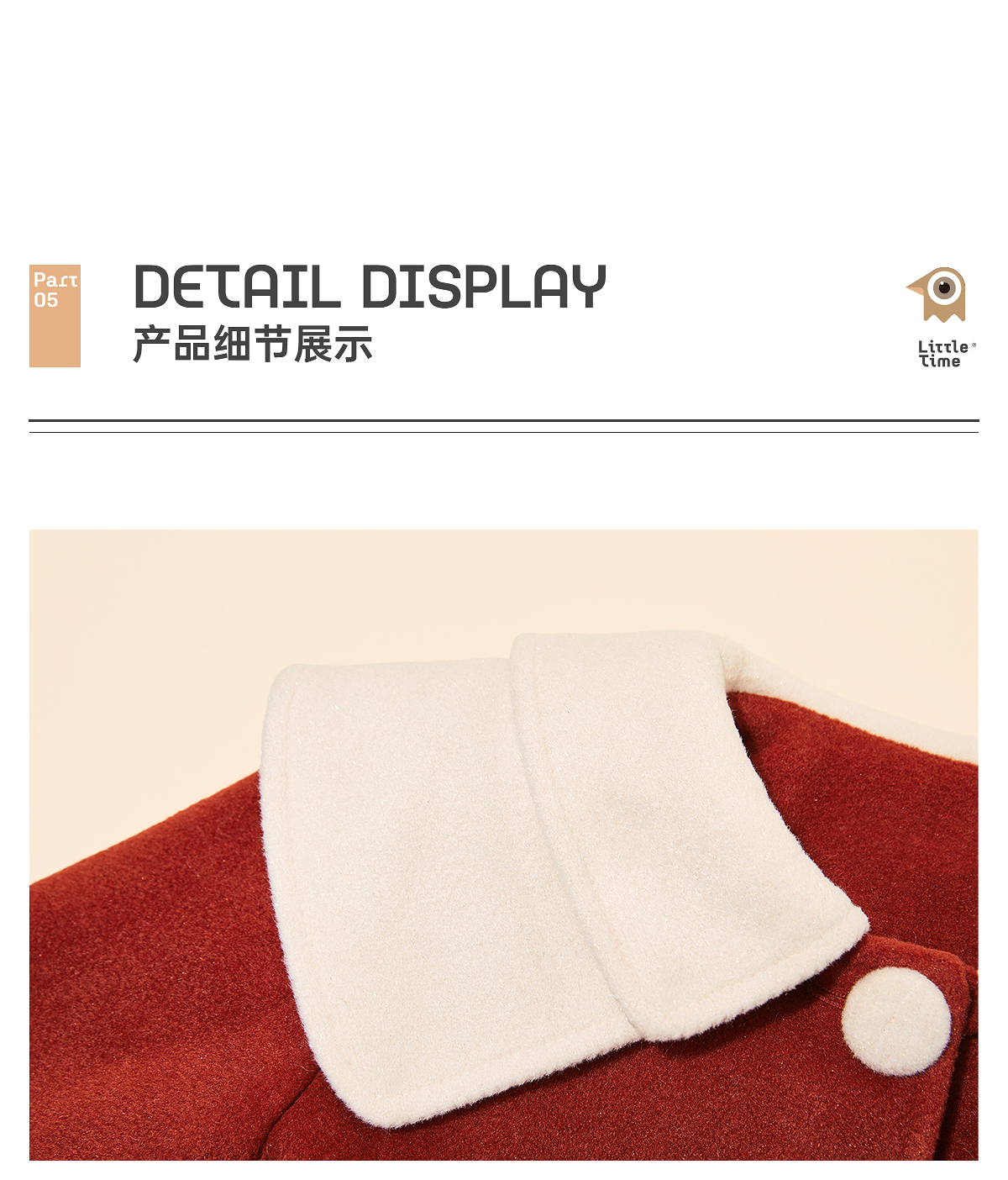 littletime女童呢子外套秋冬装2021冬季新款撞色儿童呢子大衣