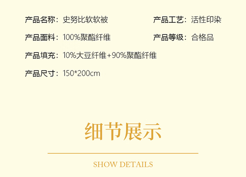 史努比卡通儿童加厚被芯 黄小豆软软被夏凉被 SNB07-36 XHR