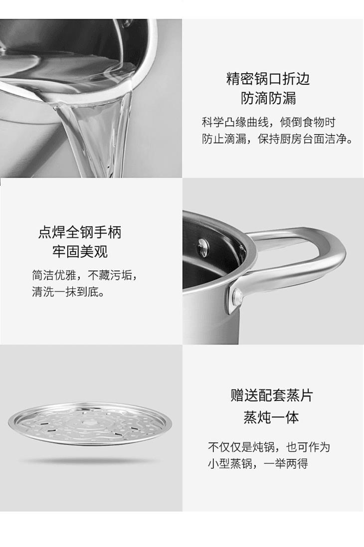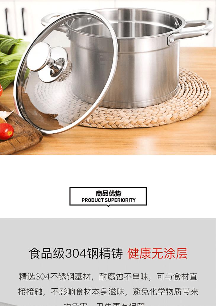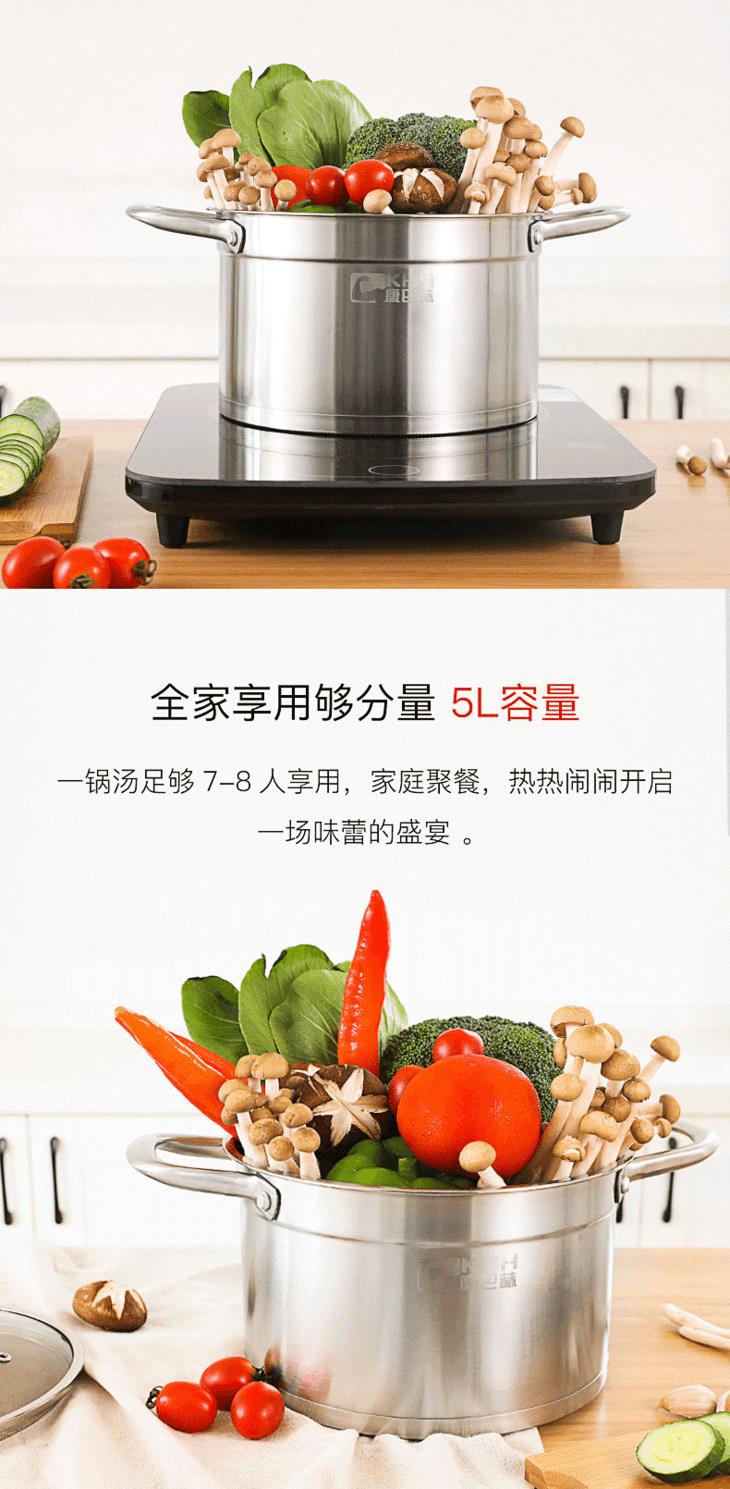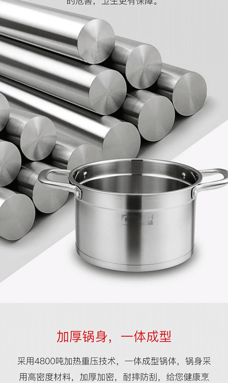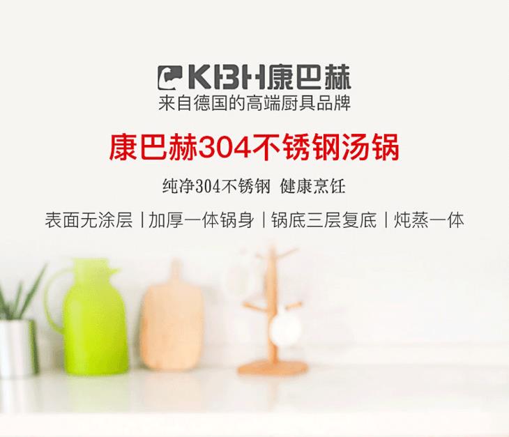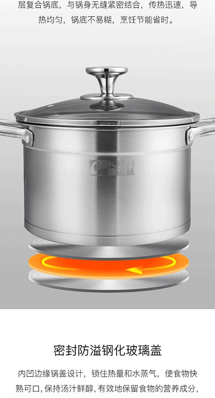 康巴赫汤锅加厚304不锈钢熬汤奶锅泡面辅食锅燃气电磁炉通用家用