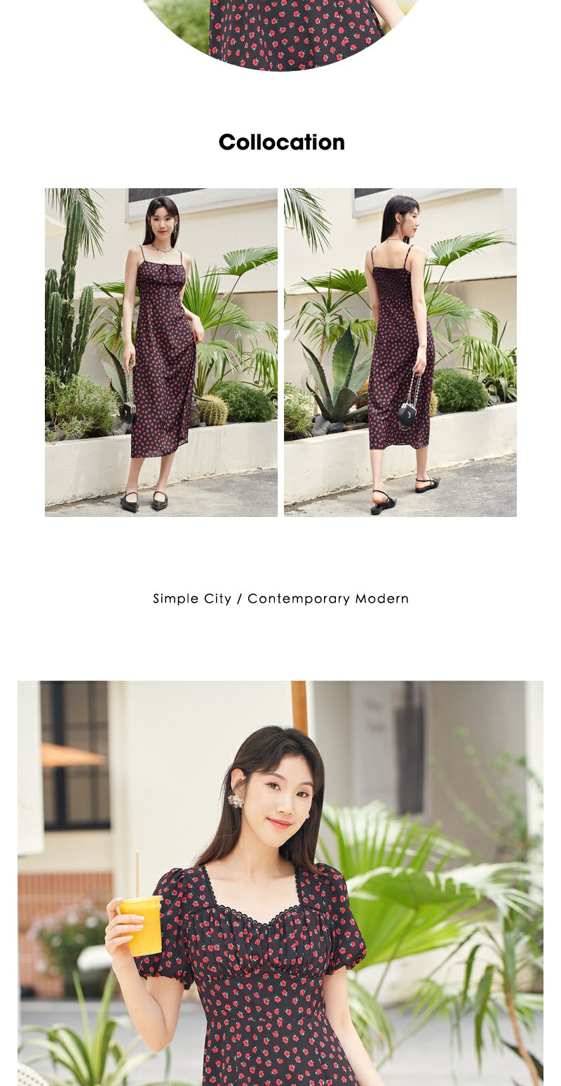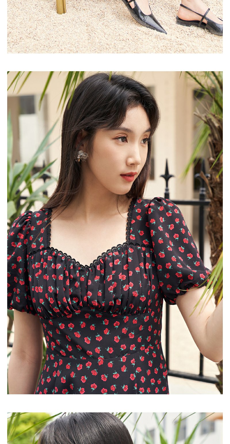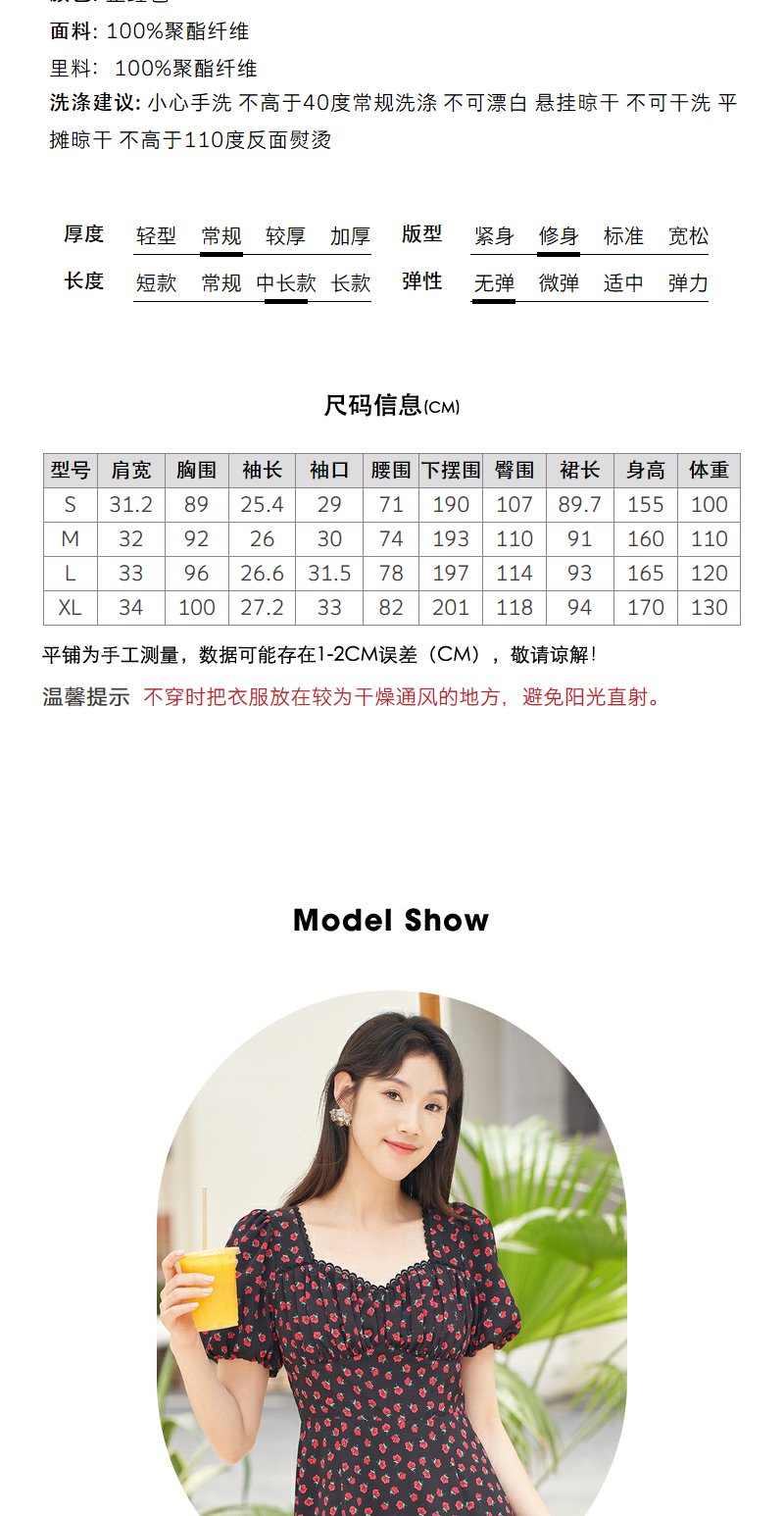 NEELLY纳俪夏季复古方领泡泡袖碎花连衣裙女雪纺A字裙露背度假风N23054Y0551621302