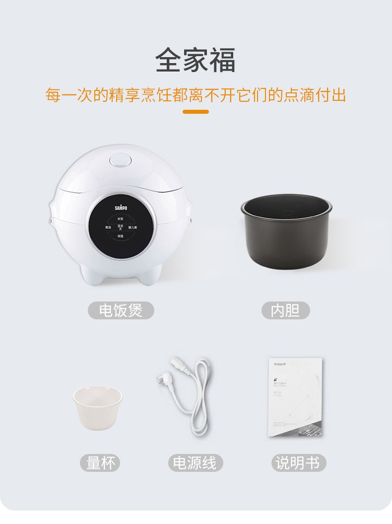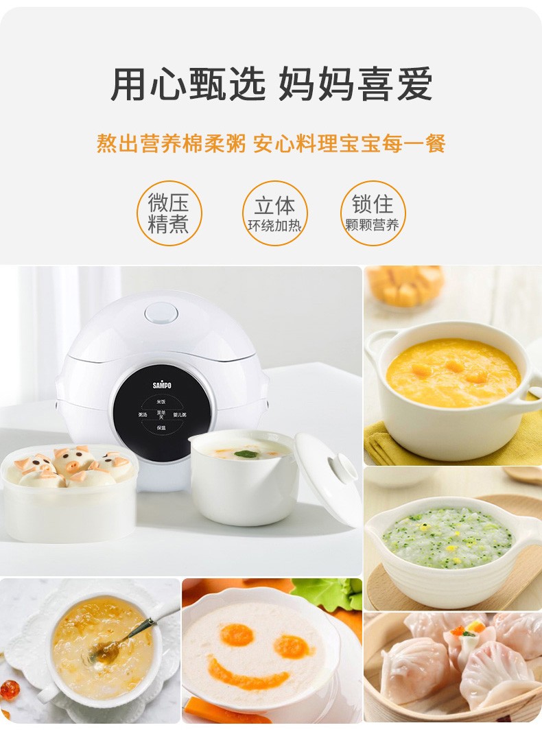 SAMPO智能电饭煲多功能家用单人婴儿辅食迷你小容量不粘锅SP-FB1501(Z)电饭锅