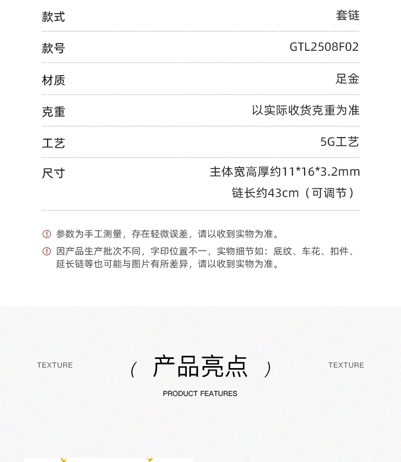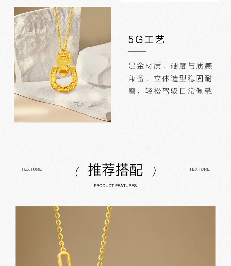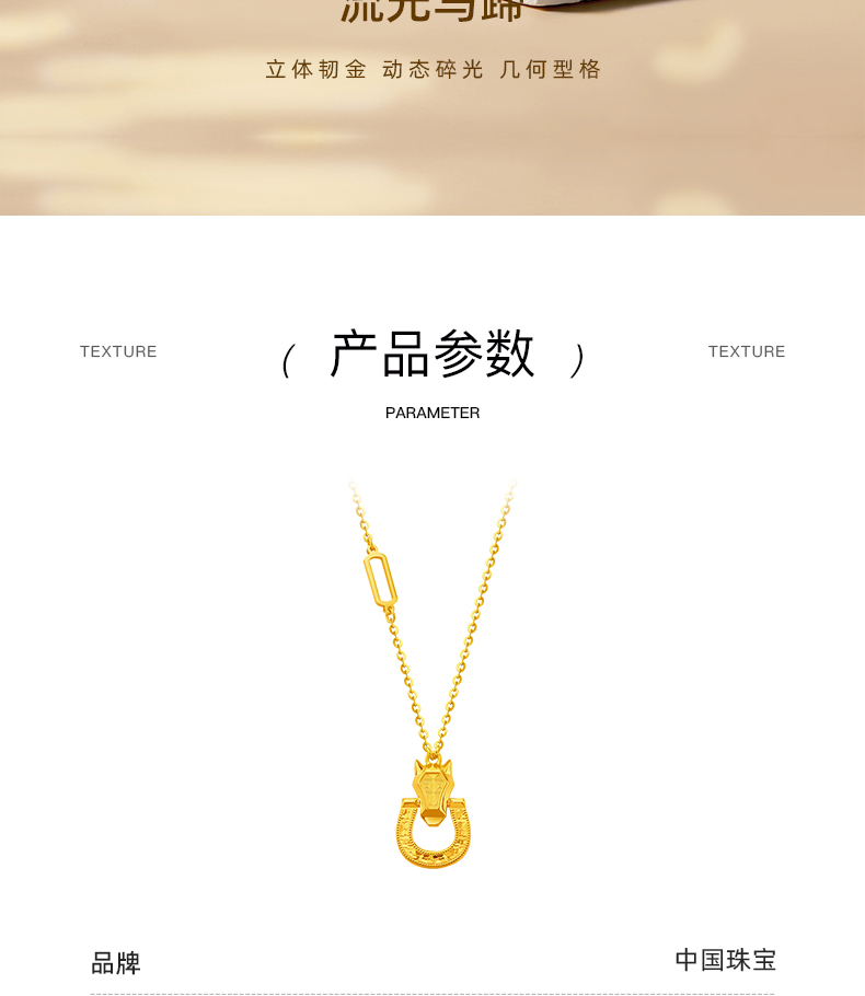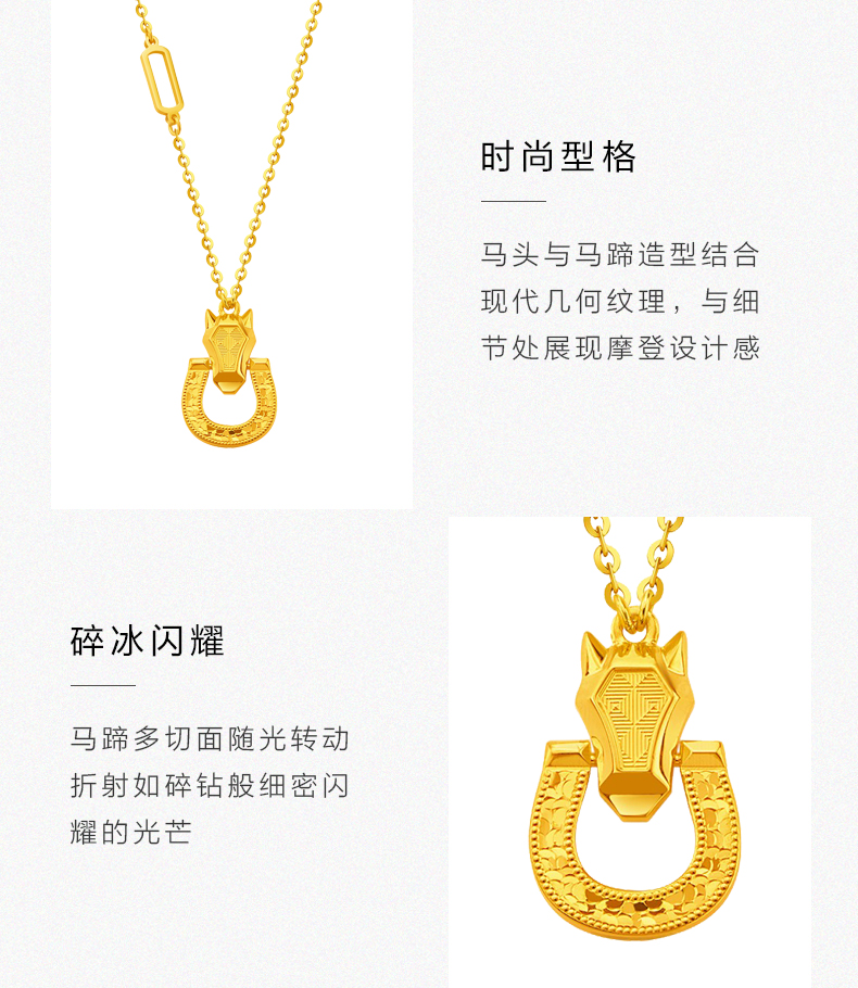 流光碎碎冰黄金马蹄项链 5G足金套链锁骨链送女友礼物