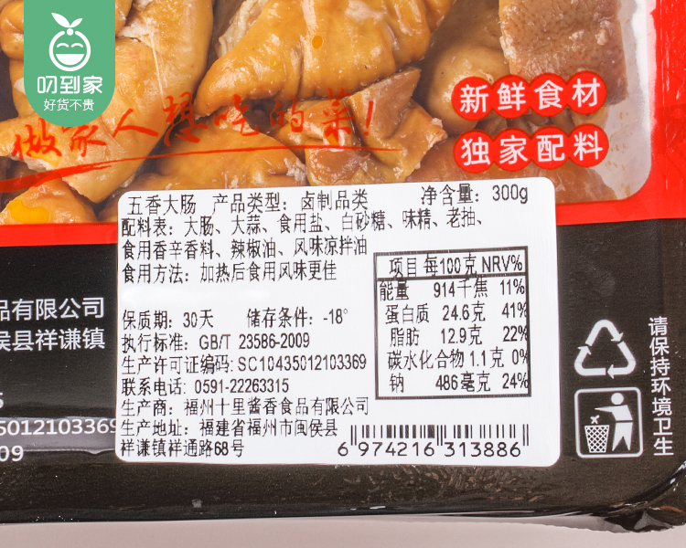 十里酱香五香大肠(300g±20g/盒 加热即食)生产日期: 3月