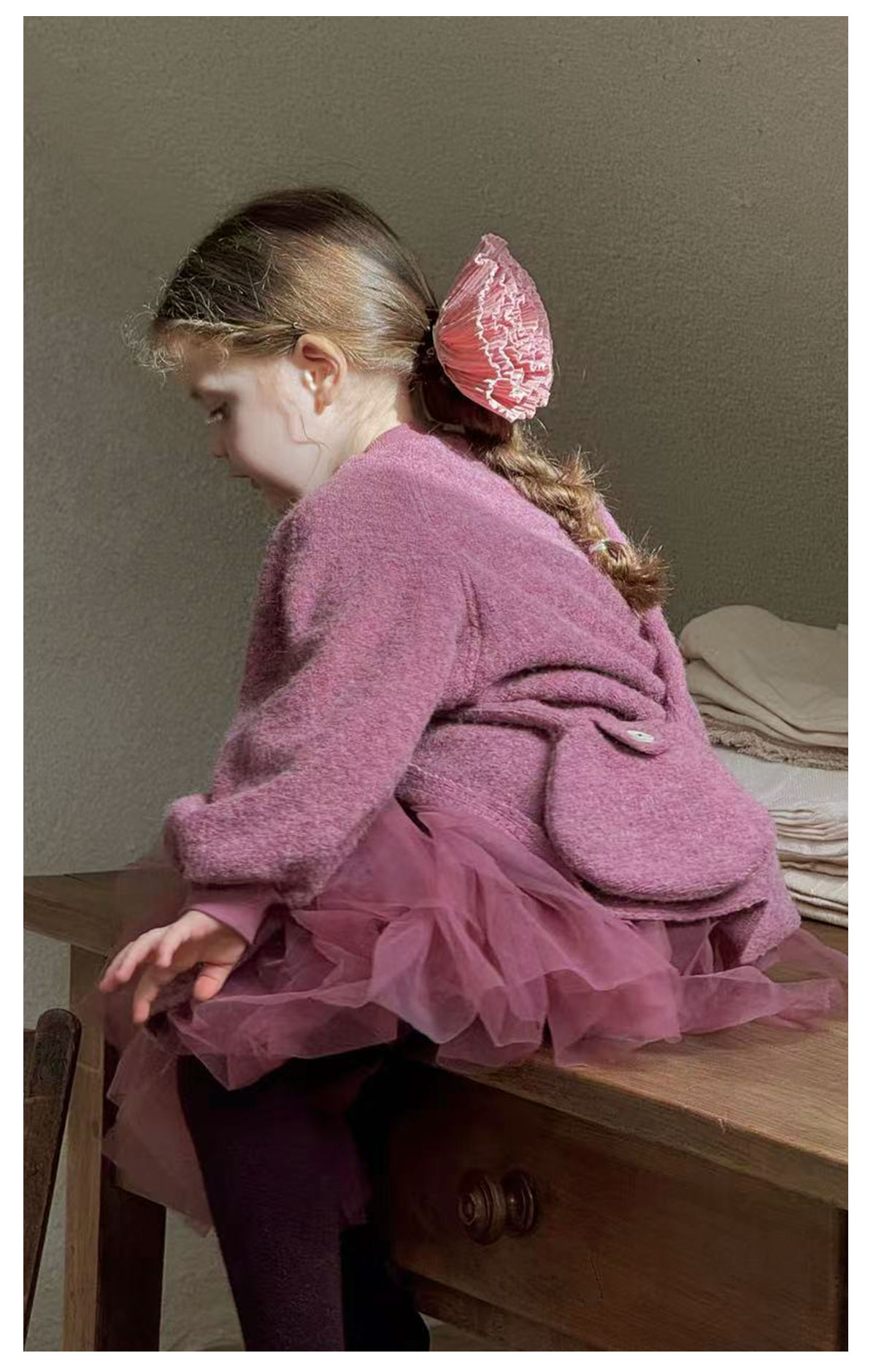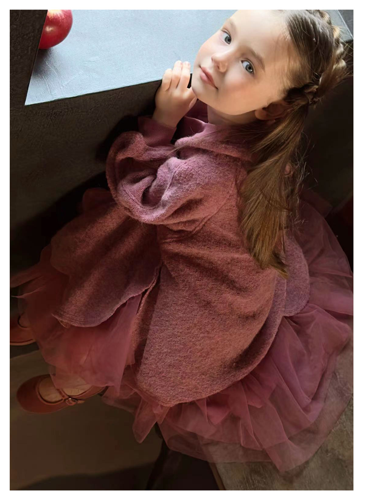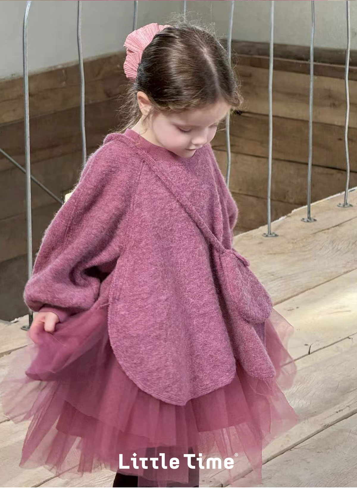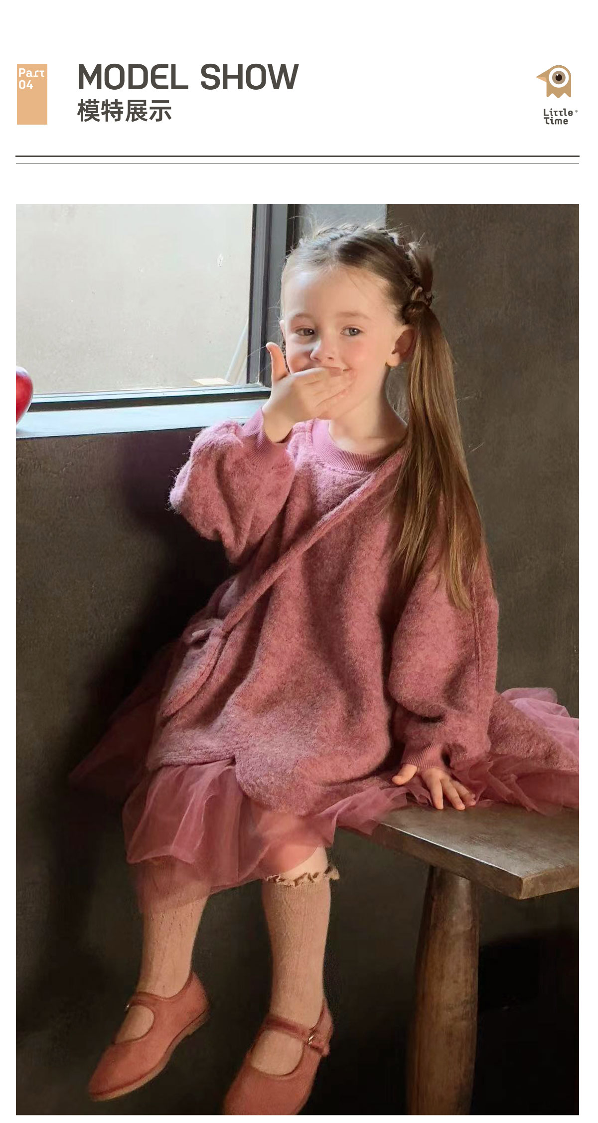 littletime女童连衣裙2025秋冬新款儿童毛织网纱公主裙女宝宝裙子