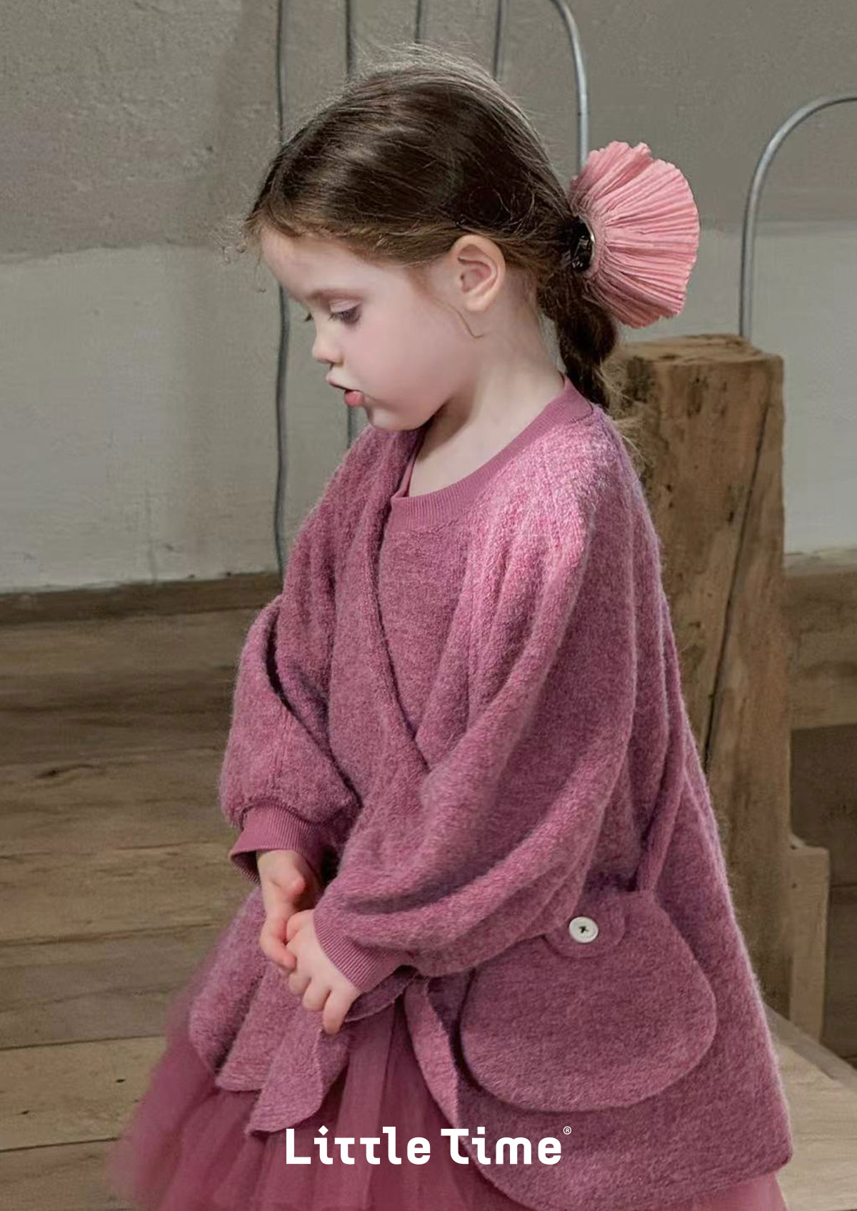 littletime童装女童羊毛开衫针织衫2021春秋新款宝宝儿童毛衣外套