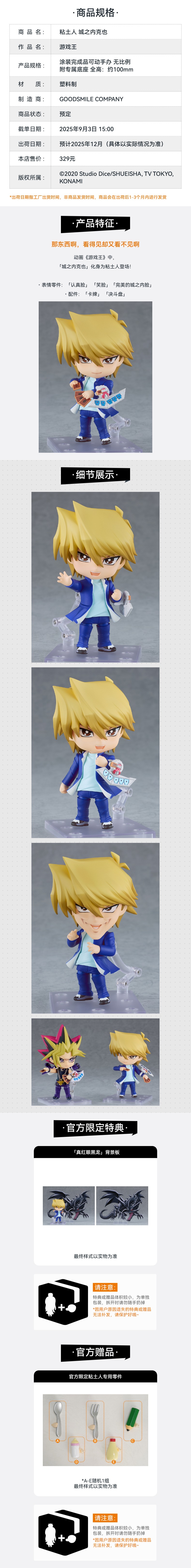【GSC预售定金】粘土人 城之内克也 游戏王 手办模玩 附官方限定特典