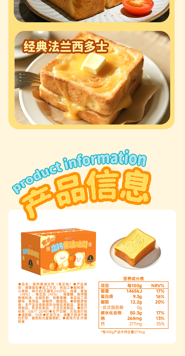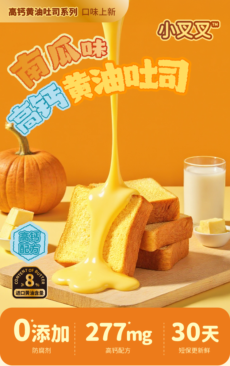 小叉叉 高钙南瓜吐司 260g 2盒装/4盒装