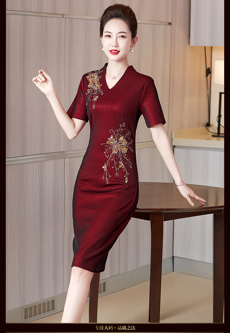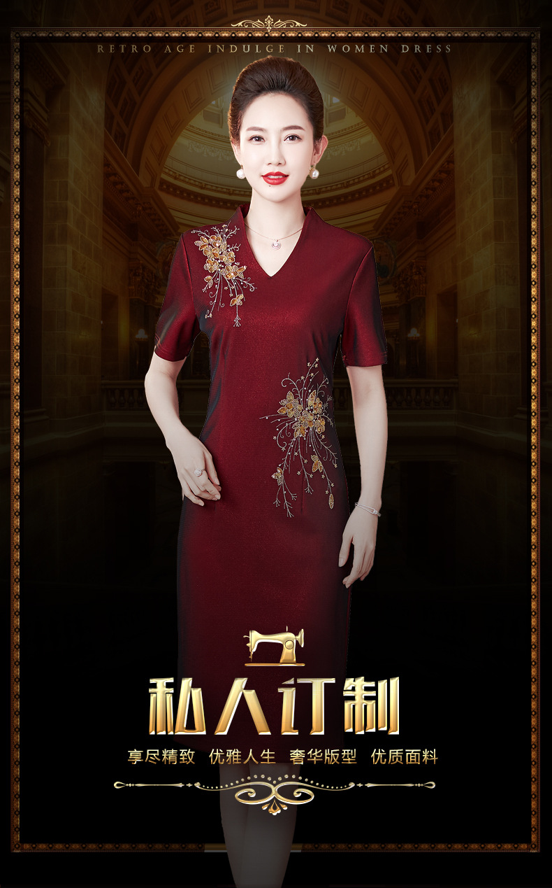 夏装新喜婆婆高贵优雅婚宴礼服连衣裙LC-2227