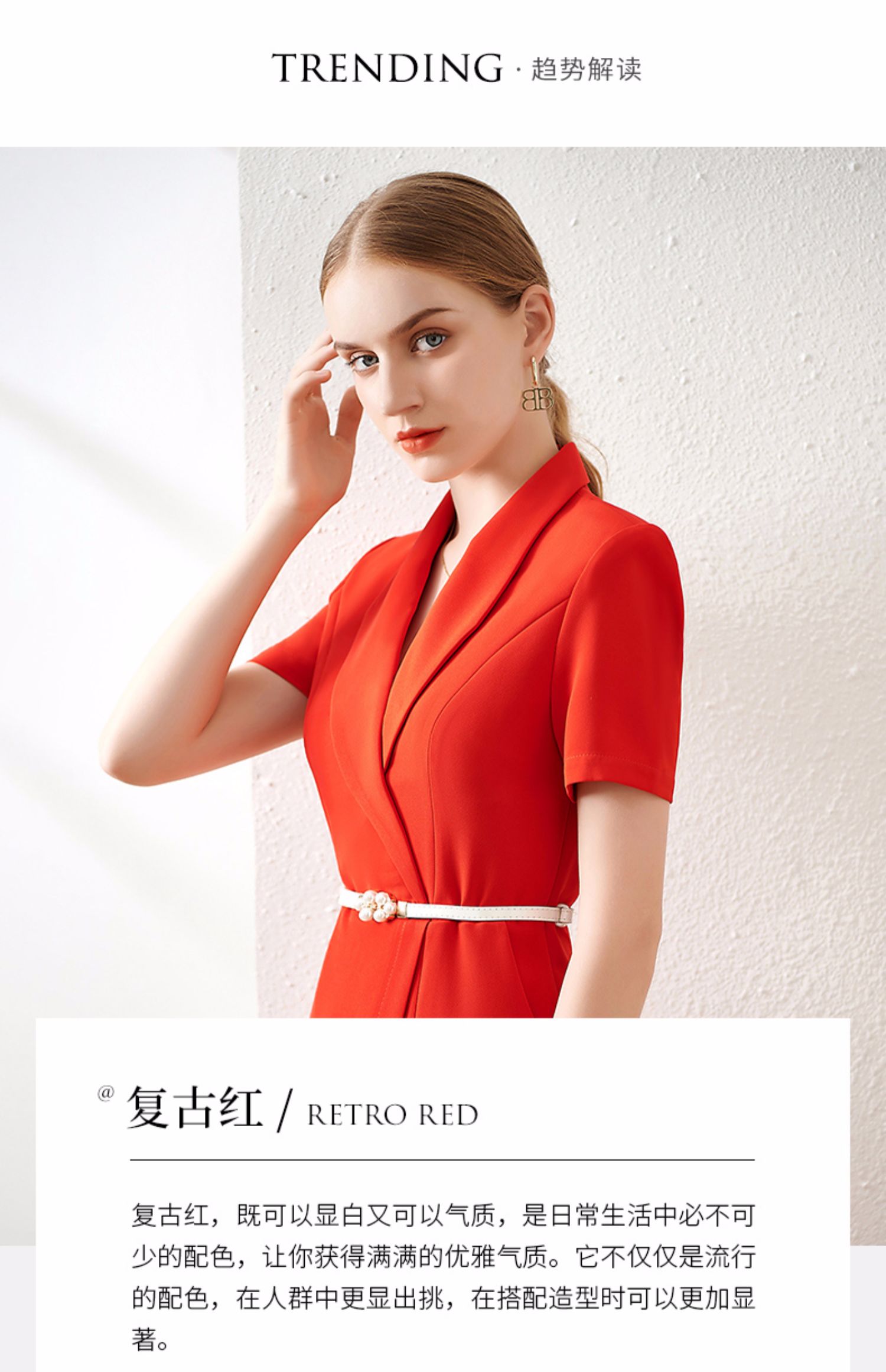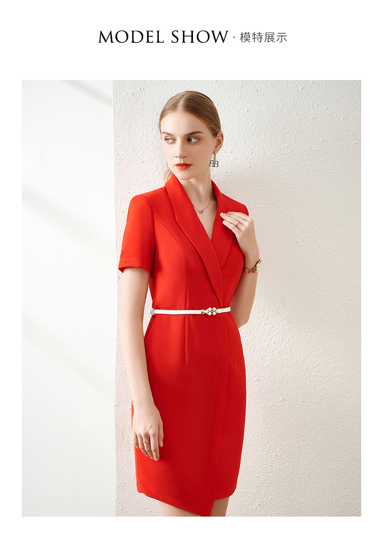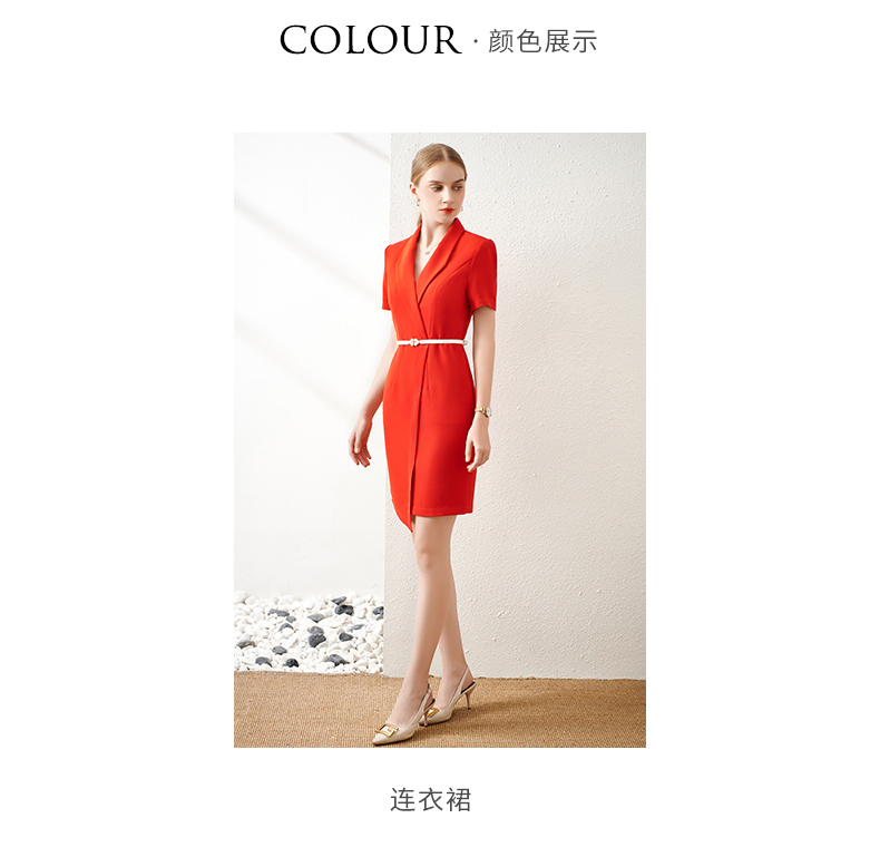 IWY/红色职业装气质女神范西装连衣裙艺考播音主持人正装时尚工作服04Q1