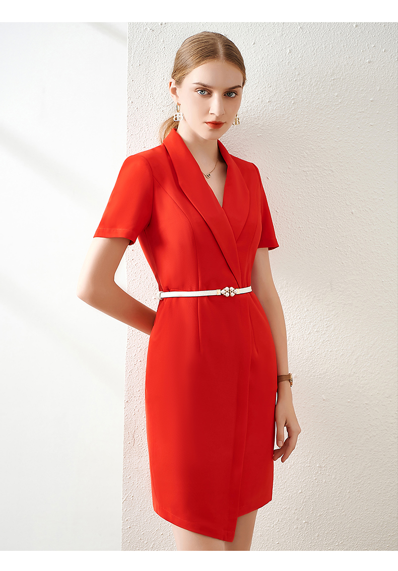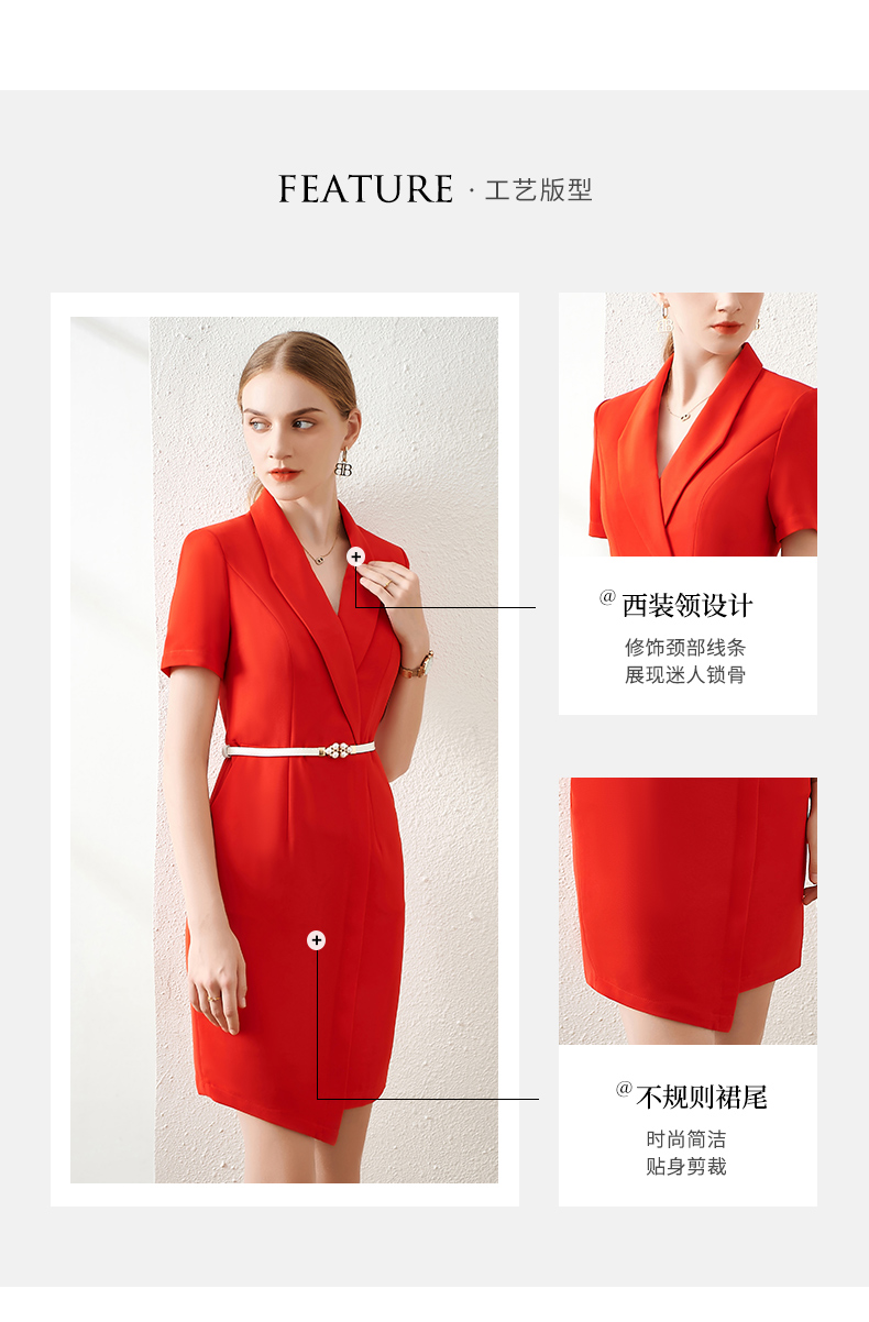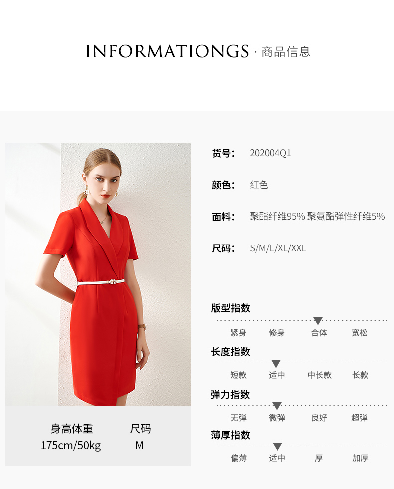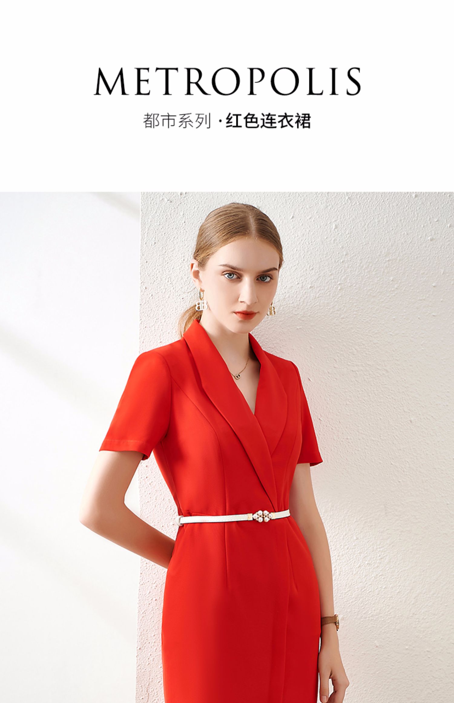 IWY/红色职业装气质女神范西装连衣裙艺考播音主持人正装时尚工作服04Q1