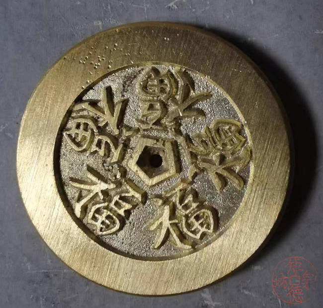 古法翻砂铸造,非遗传承。限量制作。 纯铜古法母钱翻砂铸造而成,容易上包浆。可用于文房镇纸、茶宠、杯子托、文玩垫、手把件…… 直径约38毫米,厚约4.7毫米,重42克,手工作品有少许误差,请知晓)。 所用的原材料采用纯铜,遵循古法、严格按照古代官铸配比;矩德泉坊手作铜币所使用的母版,采用古代真母钱直接复刻,或利用钱币拓片,纯手工雕刻母版,按照古代翻砂工艺制作,铸造后的每一枚钱币,采用手工打磨,修刀所用照片无任何优化、美图。手作铜币严格遵循古代翻砂铸造、打磨工艺进行复刻,不是现代量产的冲压工艺,所以很难做到每一枚的表面痕迹保持一致。 为了尽量还原古代钱币的文字神韵与时代铸造特征,每一枚都进行手工修刀、打磨。会有打磨痕迹、刻刀痕迹,铸造气孔或者微小沙眼,这正是手工与机器制作的区别,并非瑕疵。