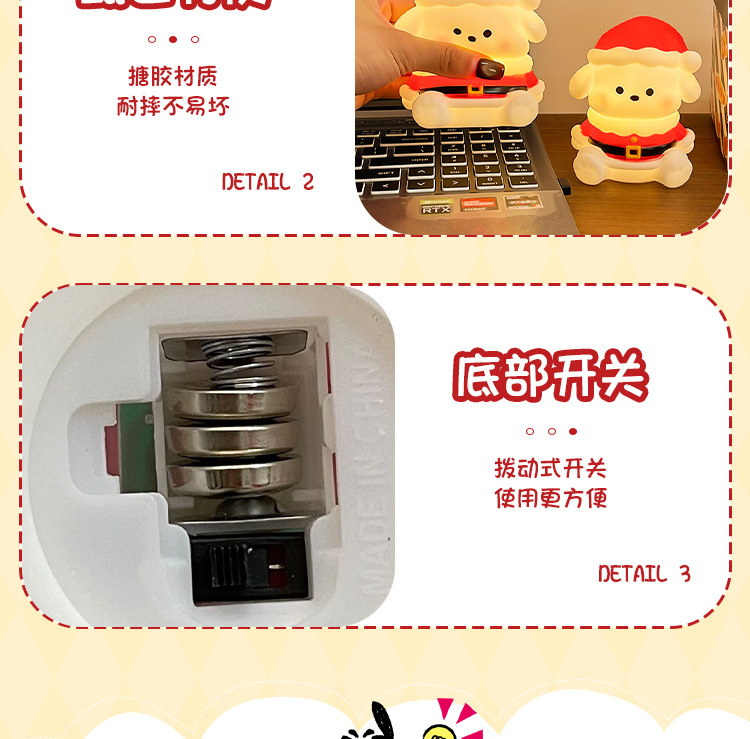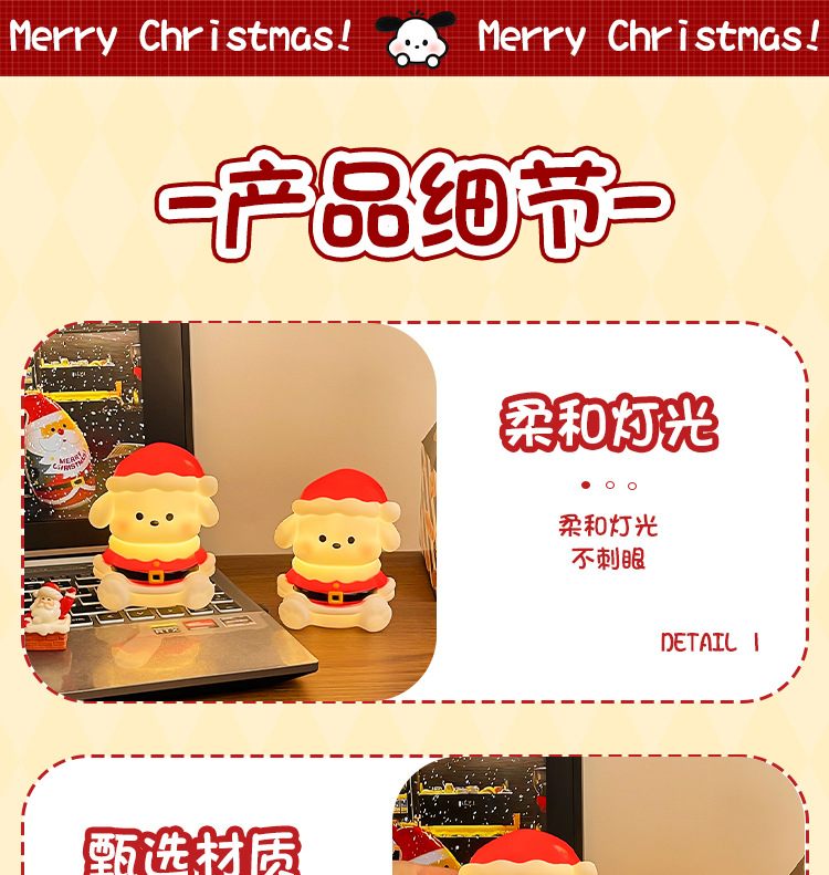 【萌趣可爱氛围装饰❗️光线柔和不伤眼】创意圣诞帕恰狗拍拍小夜灯led电子蜡烛圣诞节房间氛围感装饰摆件。jb